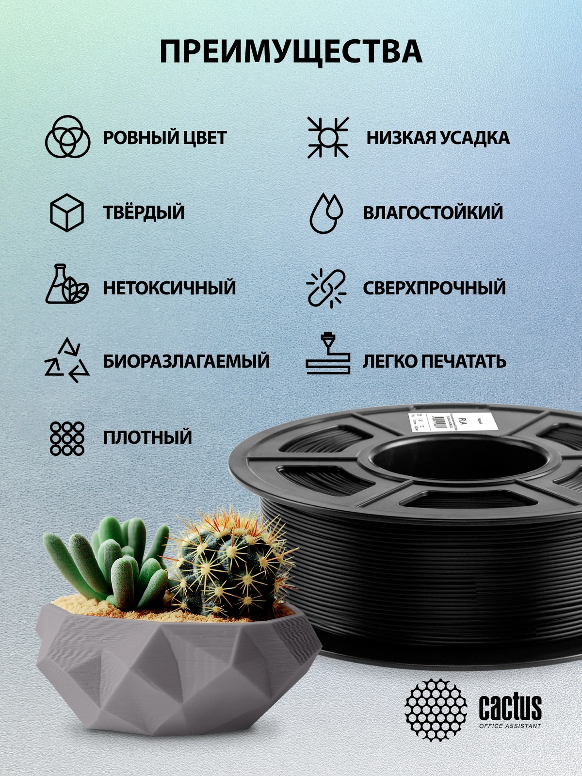 Пластик для принтера 3D Cactus CS-3D-PLA-1KG-BLACK