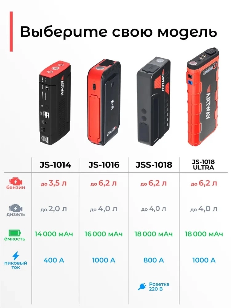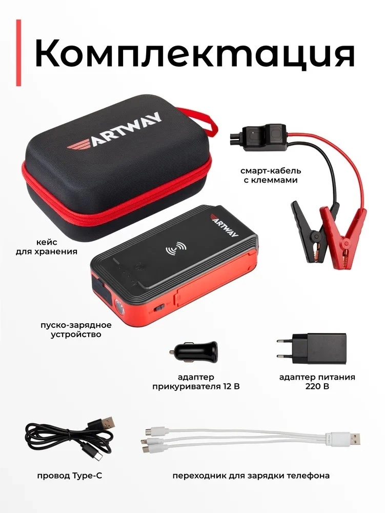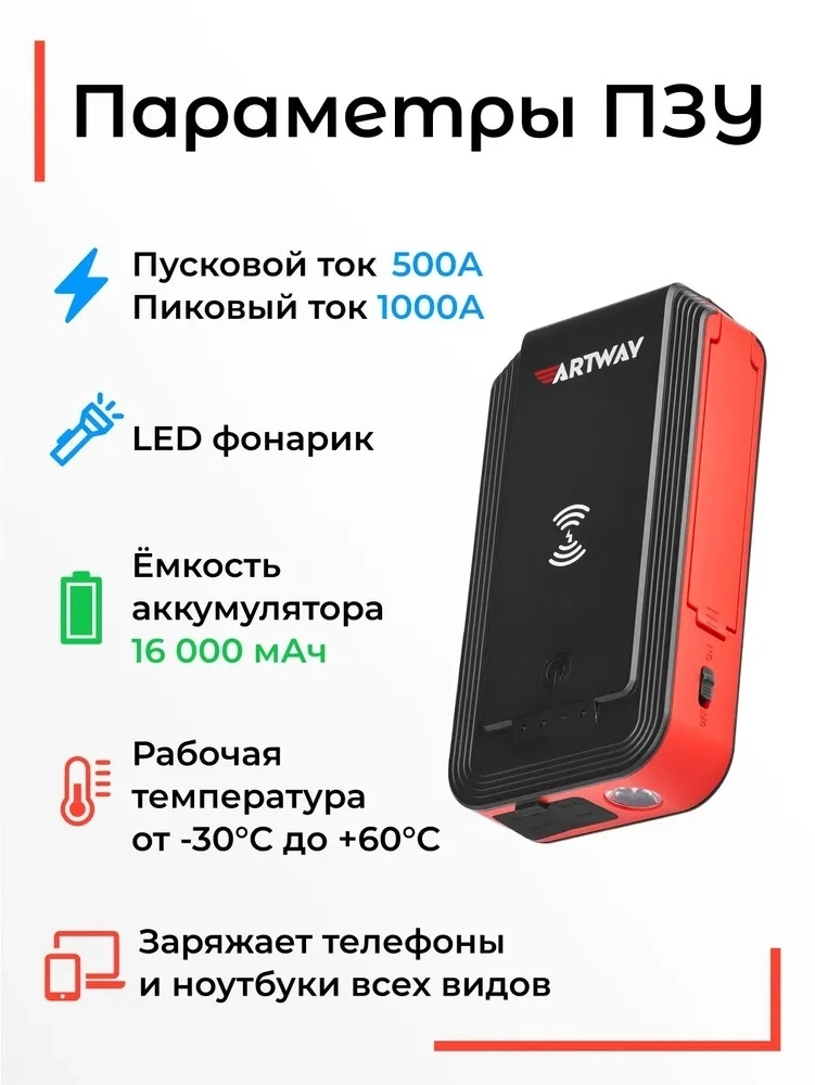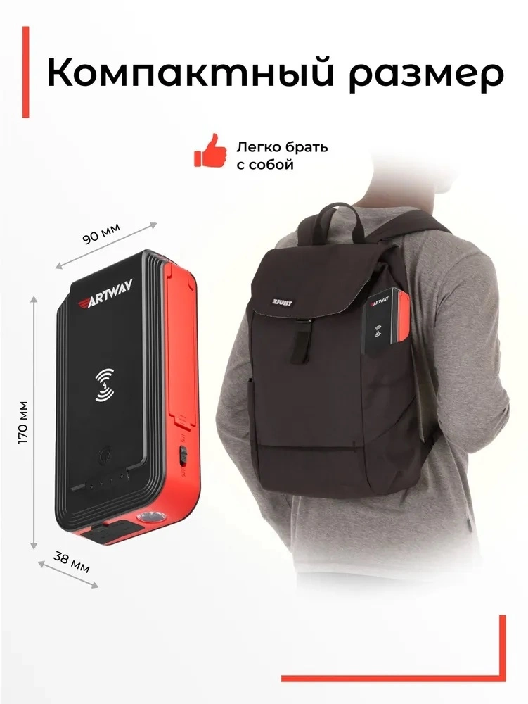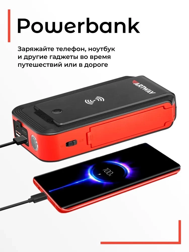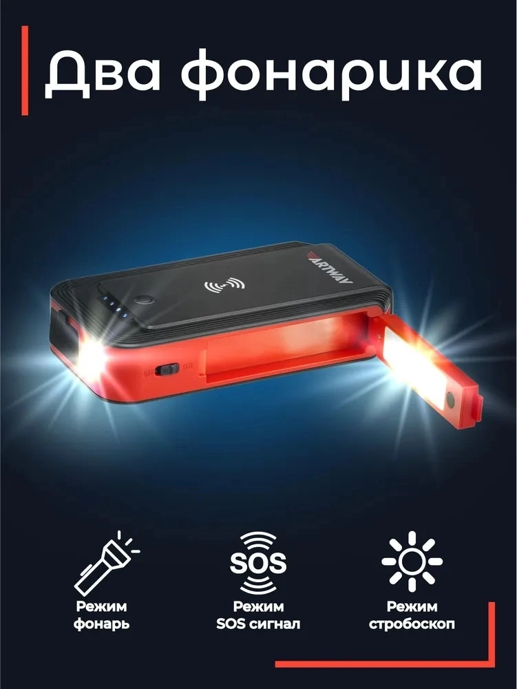 Artway JS-1016 устройство, позволяющее произвести запуск двигателя автомобиля, подзарядить гаджеты, а также служить полноценным источником питания.