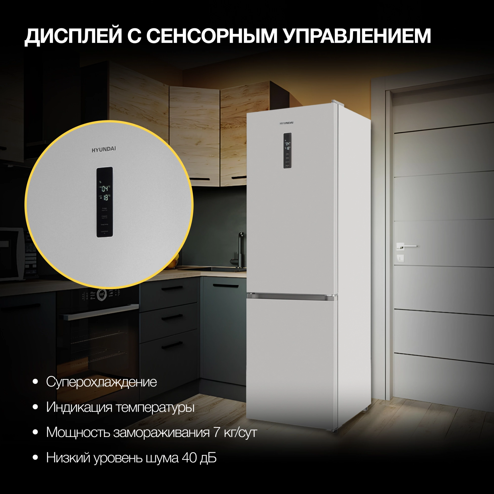 Стильный дизайн. Hyundai CC3584F выполнен в цвете «нержавеющая сталь». Холодильник смотрится элегантно и добавит свежий акцент в интерьер современной кухни.
