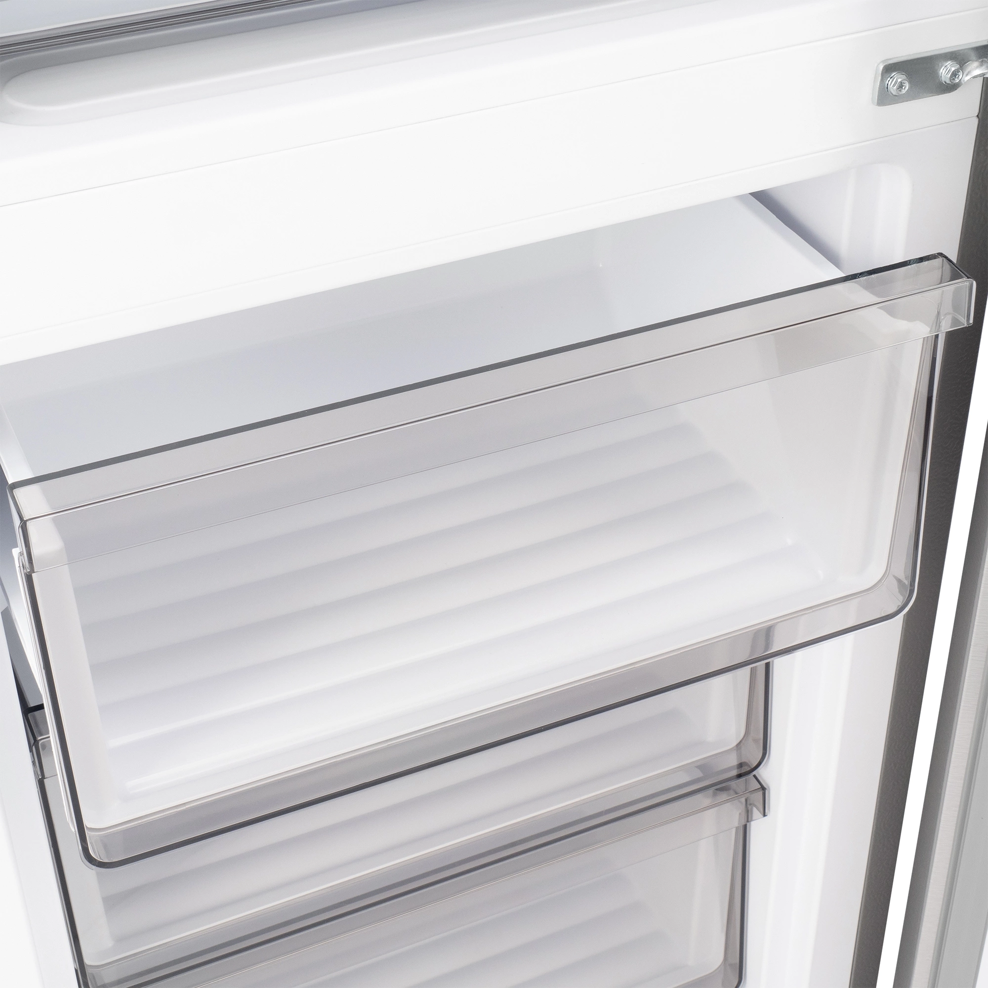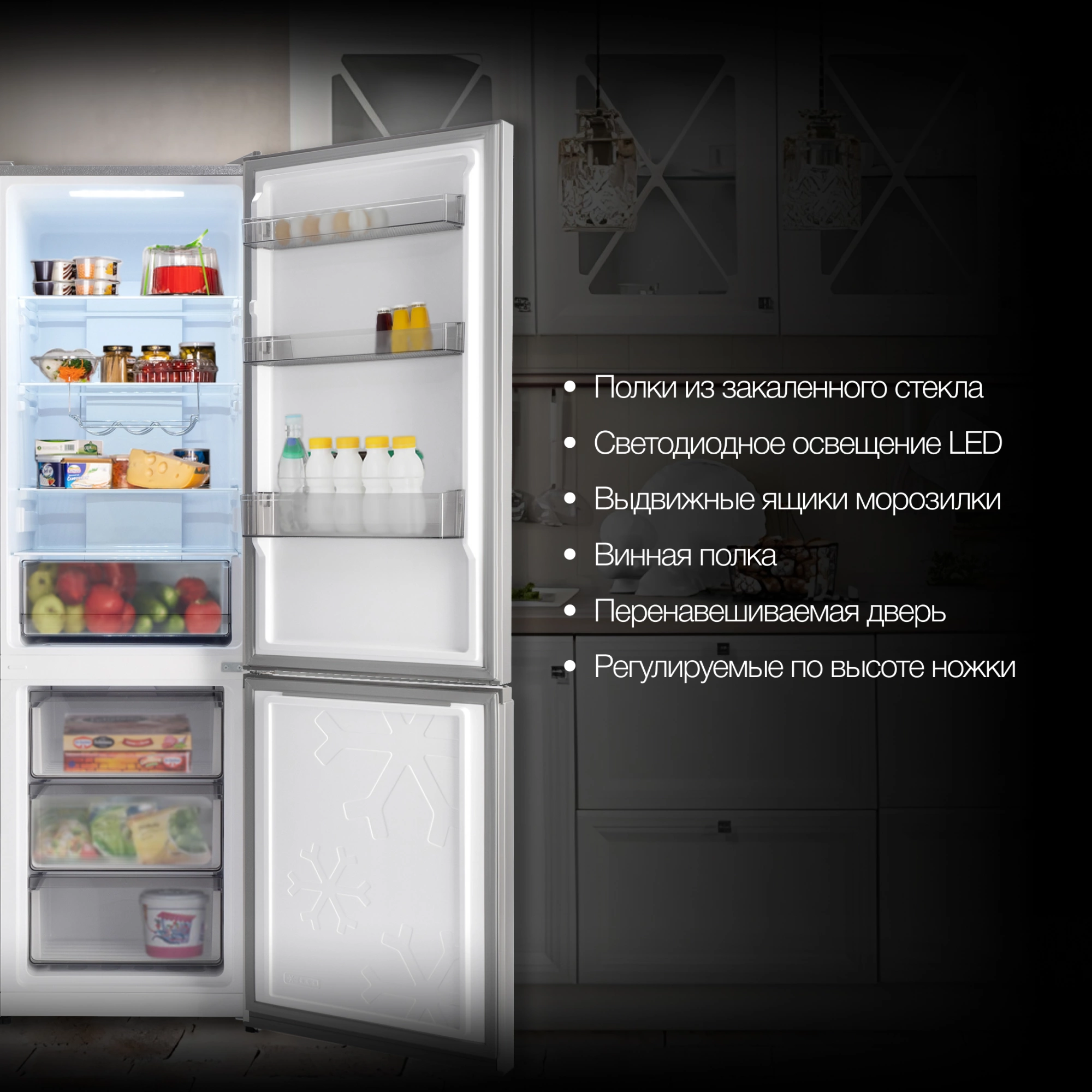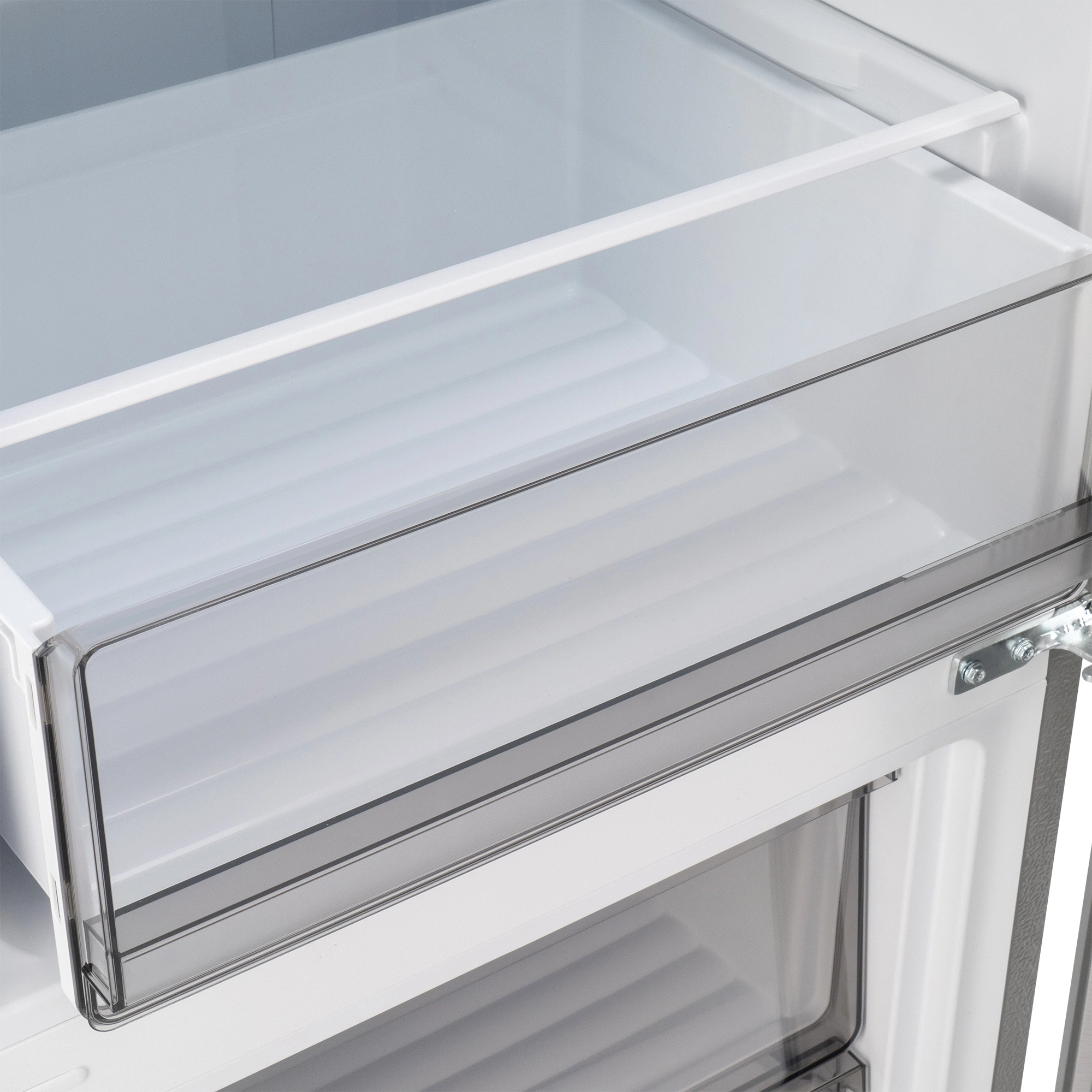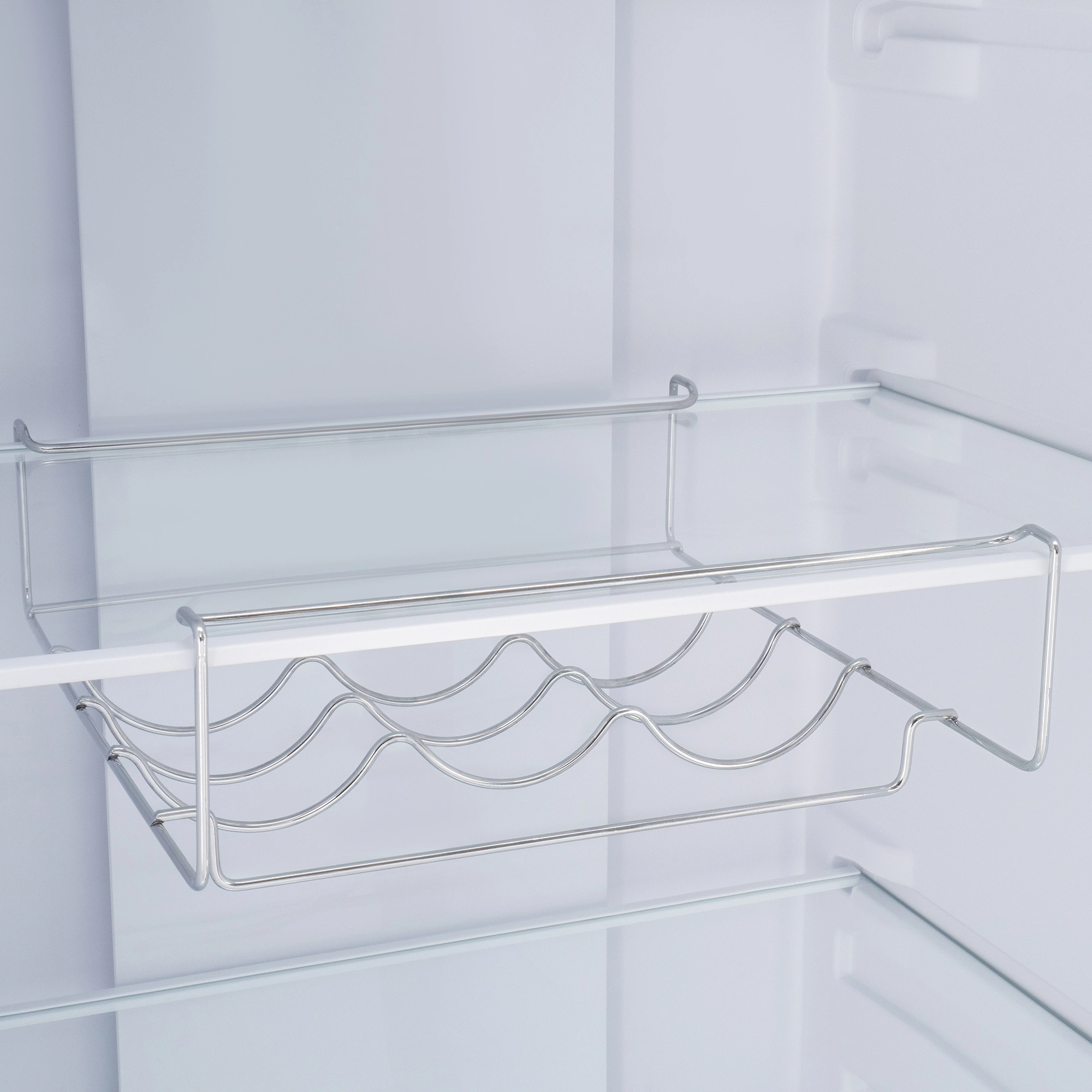Большой объем. Вместительность холодильника – 335 л. Храните продукты и напитки в просторной холодильной камере на 240 л. Внутри расположены четыре полки из прочного закаленного стекла. Регулируйте расстояние между ними, чтобы комфортно разместить в холодильнике большой торт или высокие кастрюли. Кладите овощи и фрукты в выдвижной ящик, чтобы сохранить их полезные свойства. Дополнительно есть полка для вина. Объем морозильной камеры составляет 95 л, предусмотрены три выдвижных отделения.