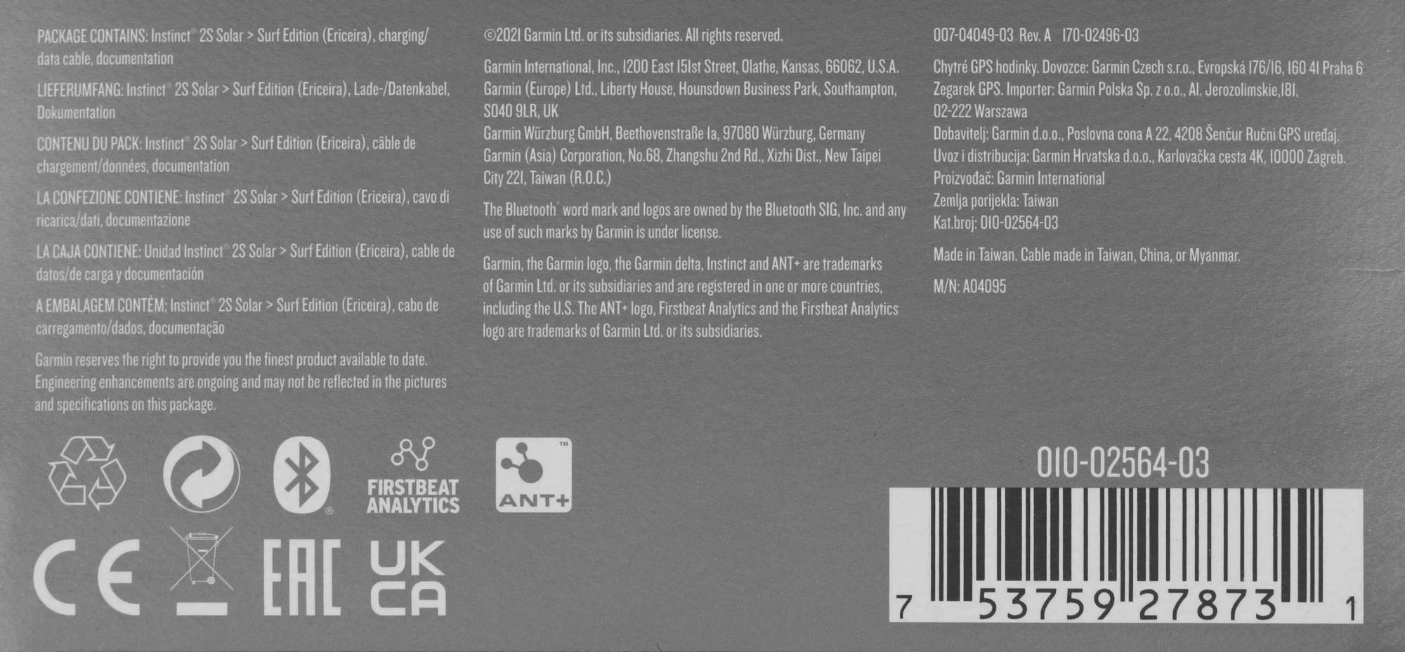 Часы Instinct 2s Solar, Кабель зарядки/передачи данных, Документация
