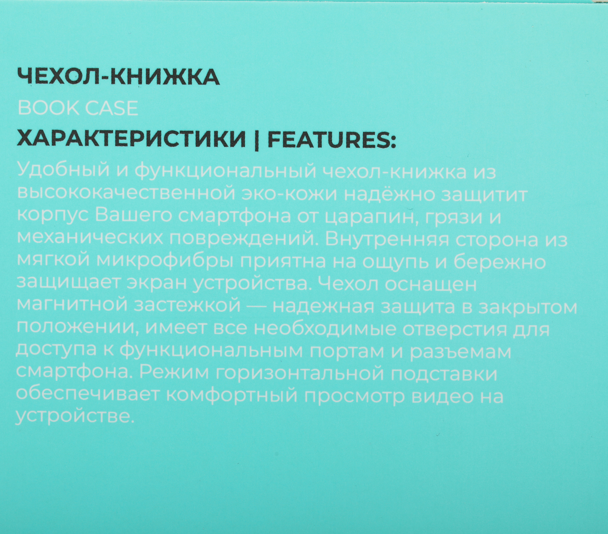 Внешний материал чехла: искусственная кожа, а ванна сделана из силикона, для надёжной фиксации верхней крышки предусмотрен магнит, который располагается сбоку, при этом не мешая активно пользоваться аксессуаром, есть функция горизонтальный подставки.