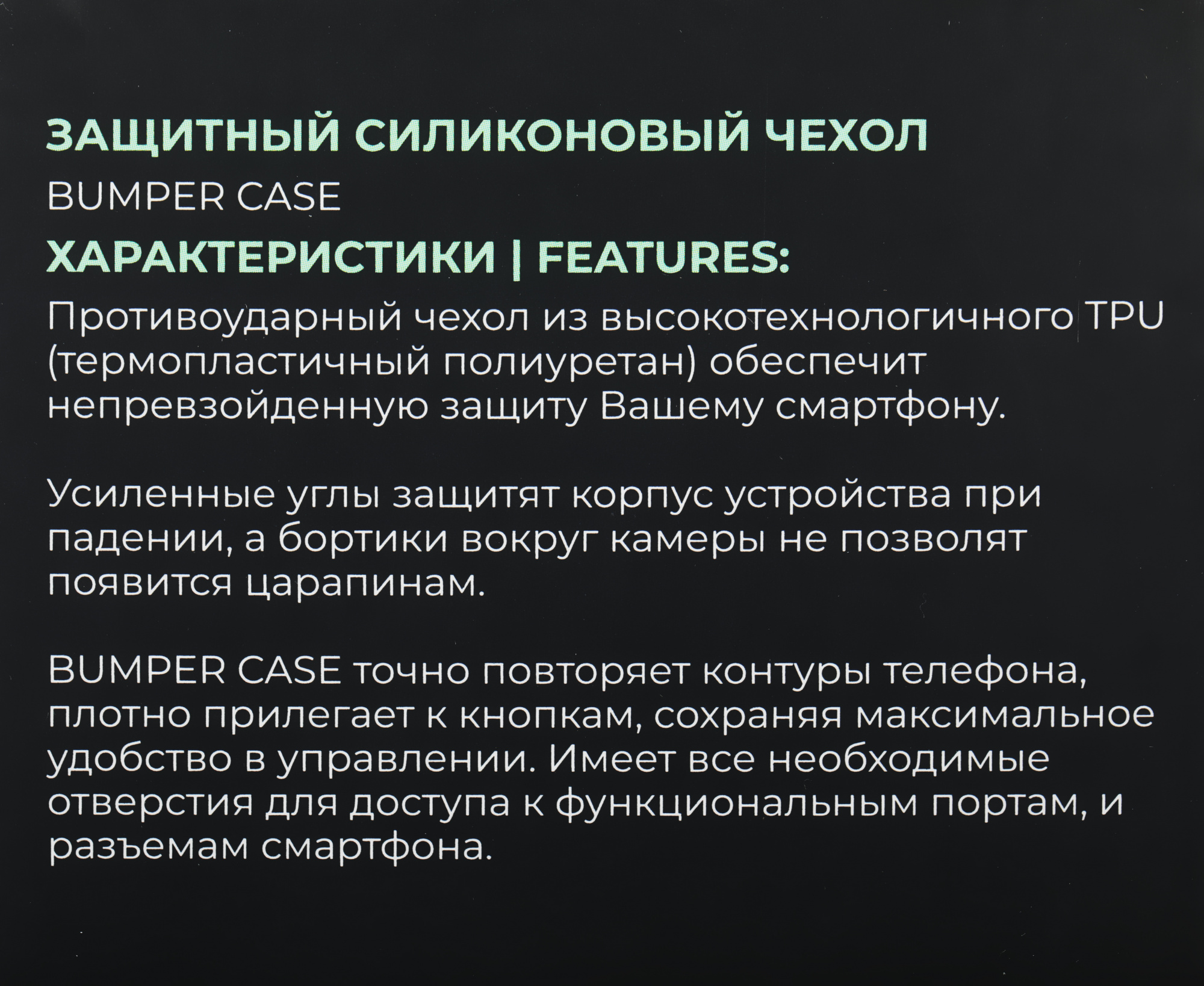 Прозрачный противоударный силиконовый чехол Bumper Case c усиленными углами и защитным бортом надёжно защитит корпус Вашего устройства от царапин, грязи и механических повреждений. Имеет все необходимые отверстия для доступа к функциональным портам и разъемам.