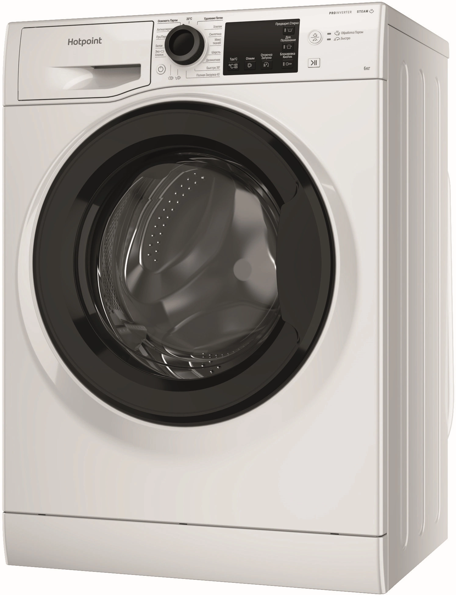 Предварительная стирка, Обработка паром, Дополнительное полоскание, Отложенный запуск, Быстро