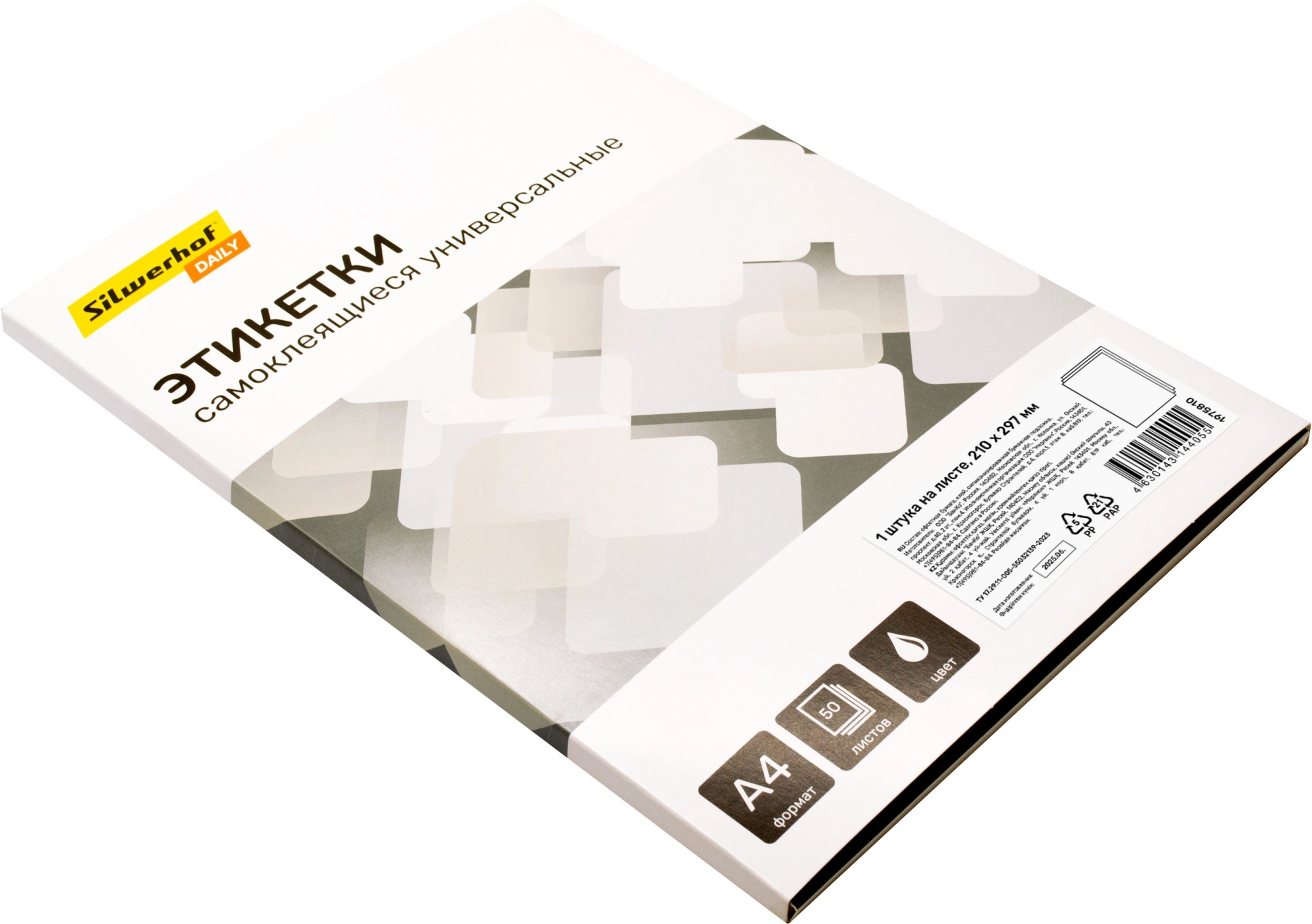 Этикетки Silwerhof A4 210x297мм 1шт на листе/50л./белый матовое самоклей. универсальная