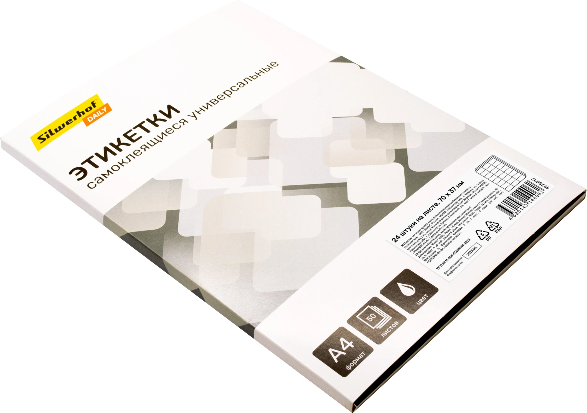 Этикетки Silwerhof A4 70x37мм 24шт на листе/50л./белый матовое самоклей. универсальная