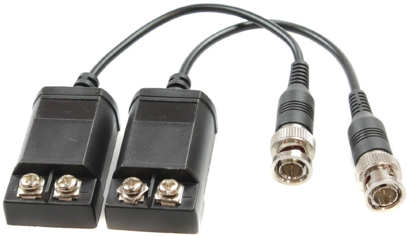 Комплект из двух пассивных приемопередатчиков HDCVI/HDTVI/AHD/CVBS по витой паре UTP Cat 5E/6 до 320м(AHD/720р)/250м(AHD/1080р), до 130м(AHD/5Mpix); Крепление кабеля витой пары под винты. Вх.-BNC на гибком кабеле длиной 125 мм. Вых. - клм. винтовая х2.