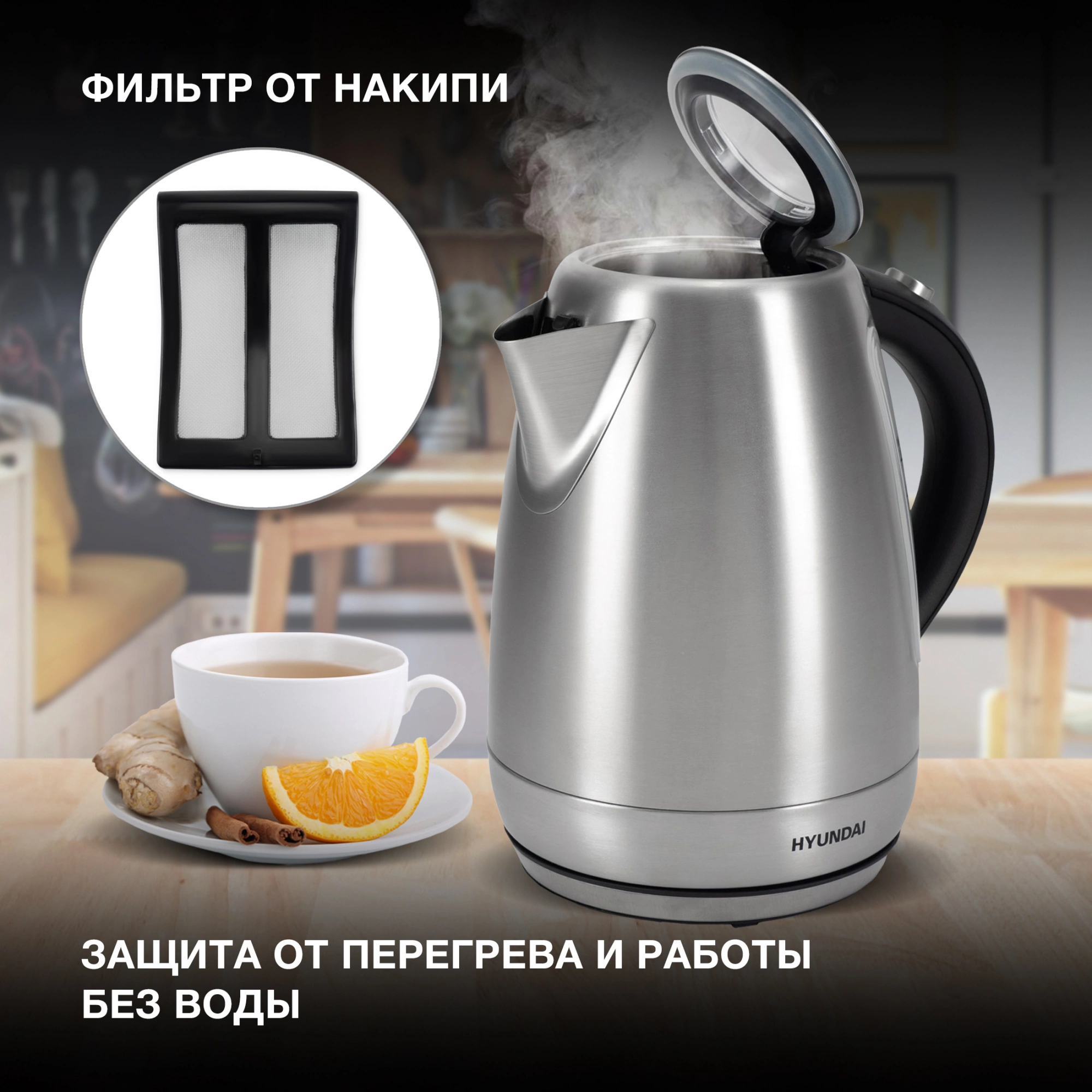Электрочайник из нержавеющей стали Hyundai HYK-S9409 имеет простую, но надежную конструкцию и максимально удобен в эксплуатации. Функция автоматического отключения при закипании или отсутствии воды гарантирует безопасность эксплуатации, благодаря корпусу из нержавеющей стали и красивой синей подсветке он будет прекрасно смотреться в любом интерьере.