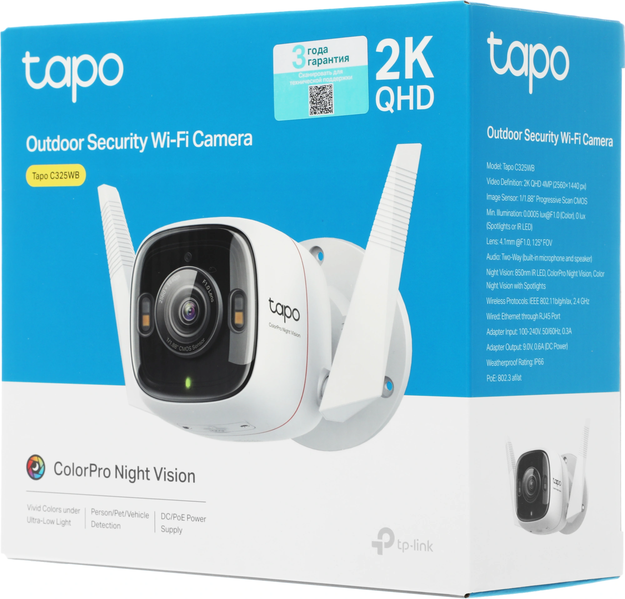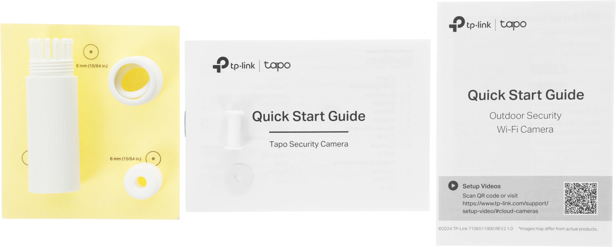 Камера, Адаптер питания постоянного тока, Крепёжные дюбели, Крепёжные винты, Крепёжный шаблон, Уплотнительное кольцо, Гермоввод, Краткое руководство по началу работы