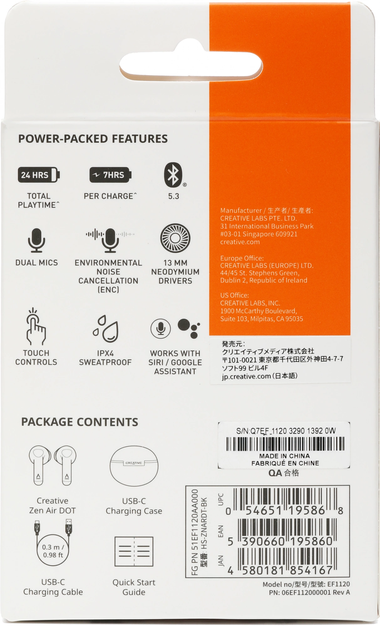 Creative Zen Air DOT, USB-C зарядный чехол, Зарядный кабель USB-C, Краткое руководство пользователя