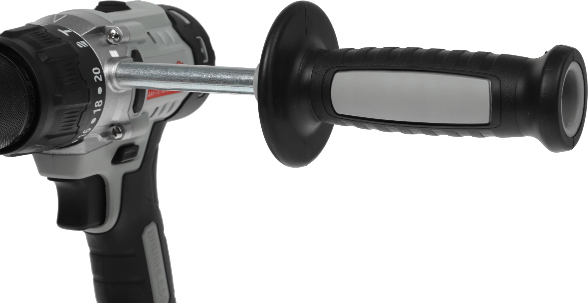 Максимальный крутящий момент 80Нм. Высокая энергоэффективность, отличная производительность, мощность и надежность благодаря вентильному бесщеточному приводу. 3 режима работы: шуруповерт с 20 позициями регулировки момента, сверление, сверление с ударом.