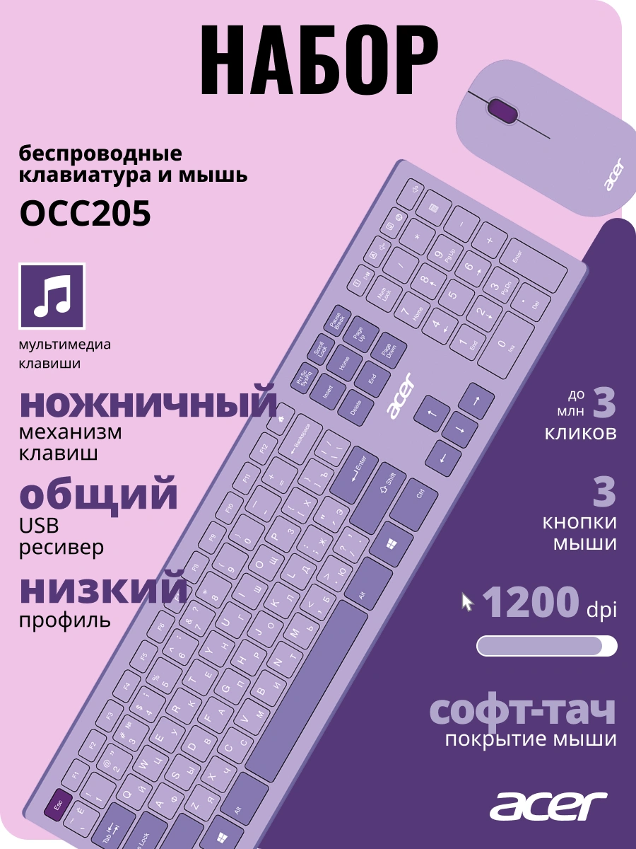 клав:фиолетовый мышь:фиолетовый USB беспроводная s...
