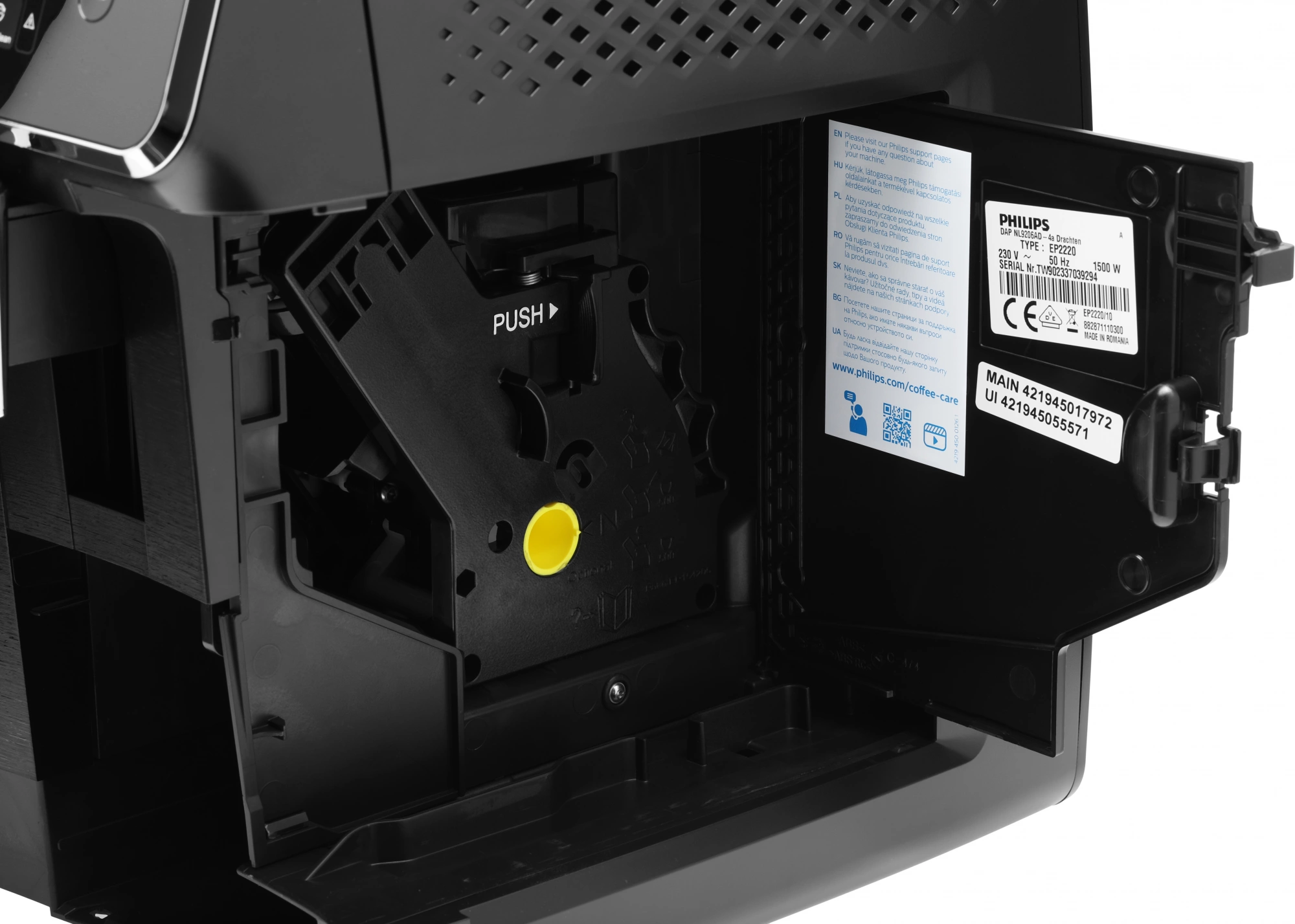 дренажный отсек для капель, отсек для отработанного кофе, резервуар для воды