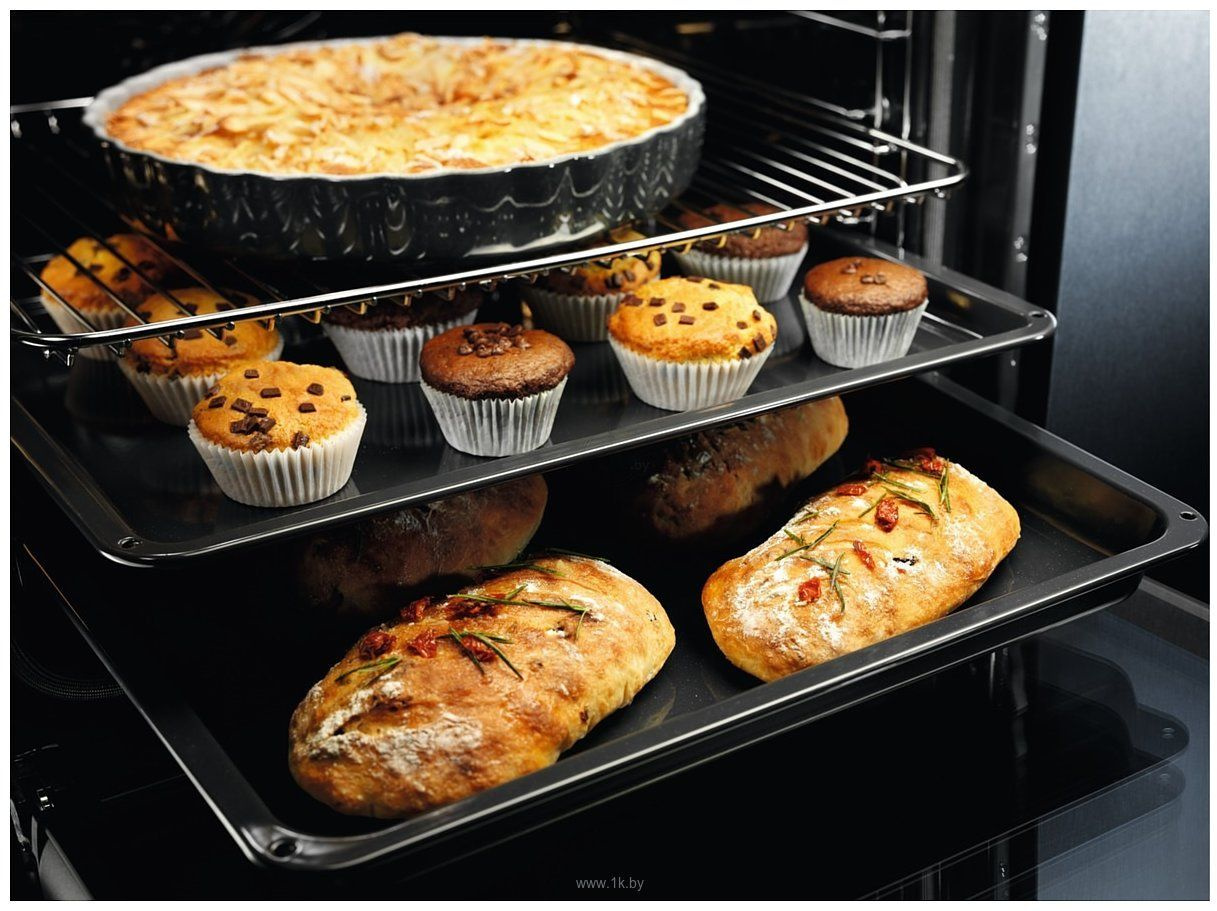 вентилятор охлаждения, дисплей, полностью стеклянная внутренняя поверхность дверцы духовки, телескопические направляющие, термощуп