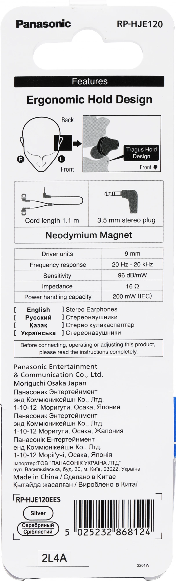 1.1м серебристый проводные в ушной раковине (RP-HJ...