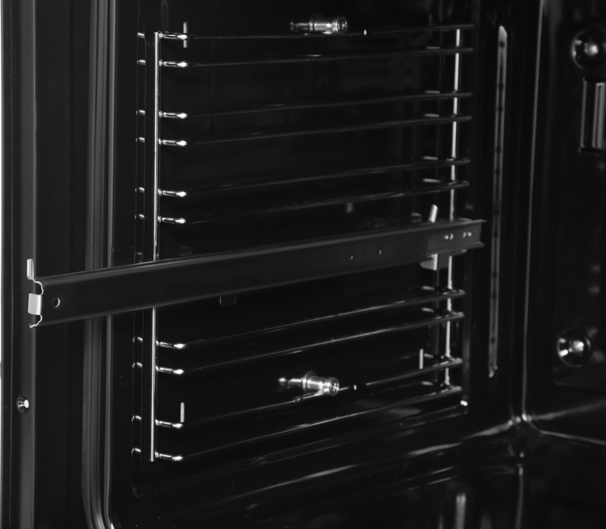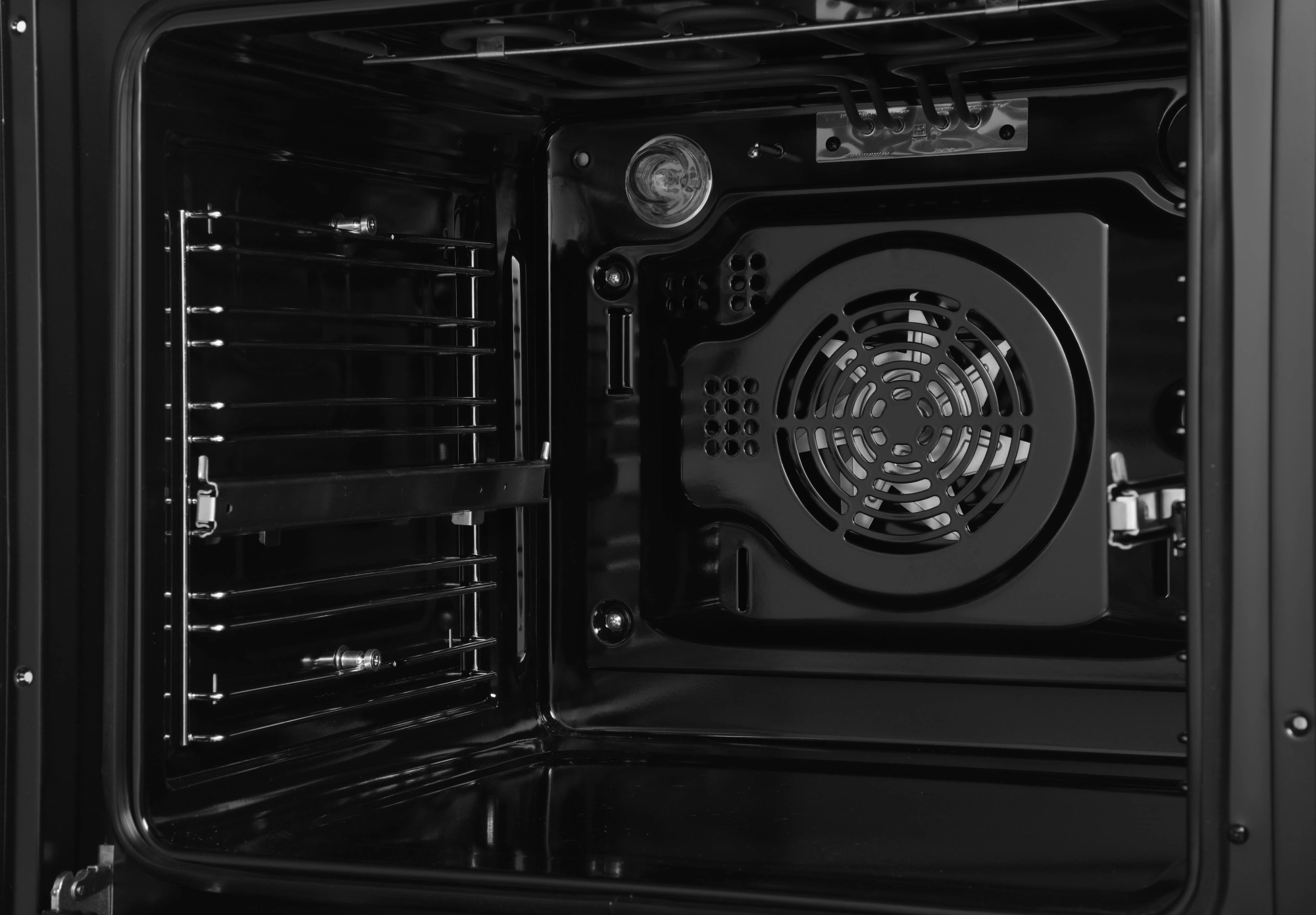 вентилятор охлаждения, дисплей, полностью стеклянная внутренняя поверхность дверцы духовки, телескопические направляющие