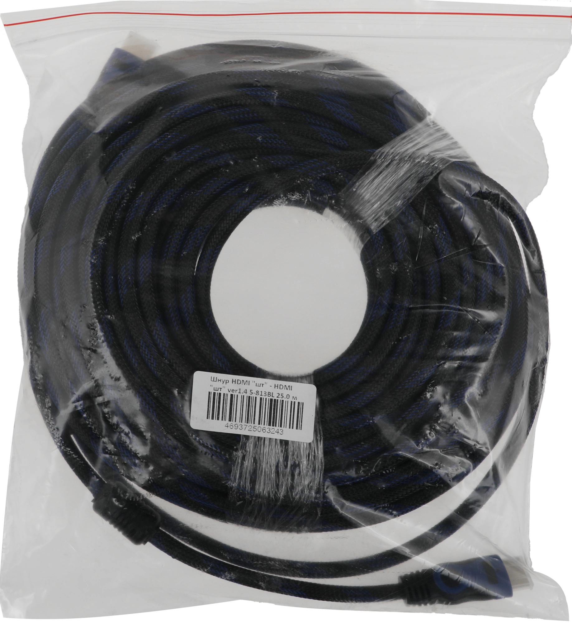 HDMI (m)/HDMI (m) 25м. феррит.кольца черный/синий ...