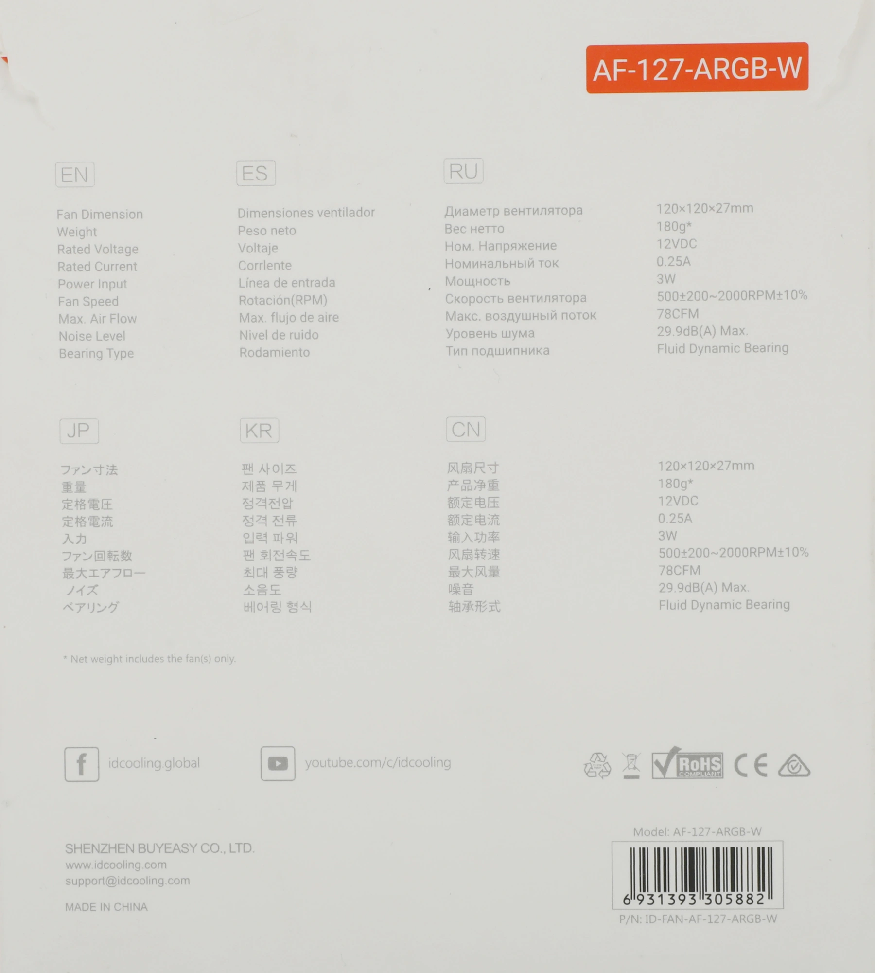 ARGB 120х120x27 белый 4-pin 30дБ (