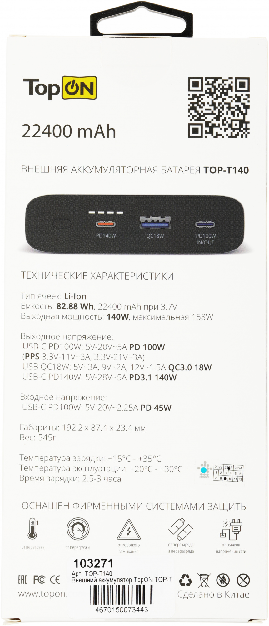 USB-C PD140W: 5V-28V~5A PD3.1 140W. USB QC18W: 5V~3A, 9V~2A, 9V-12V~1.5A QC3.0 18W. Протоколы быстрой зарядки PD3.1, PPS, QC3.0 и др.