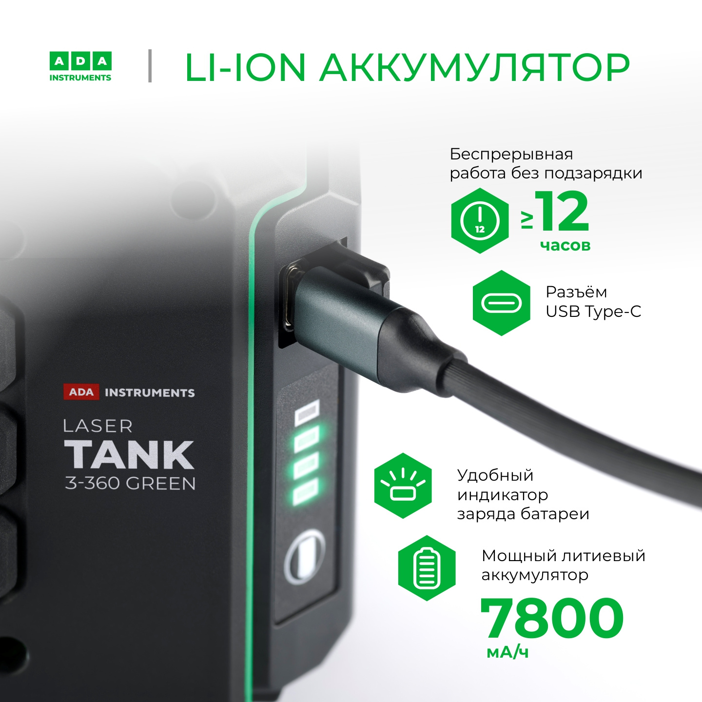 2кл.лаз. 515нм цв.луч. зеленый 3луч. (А00633)