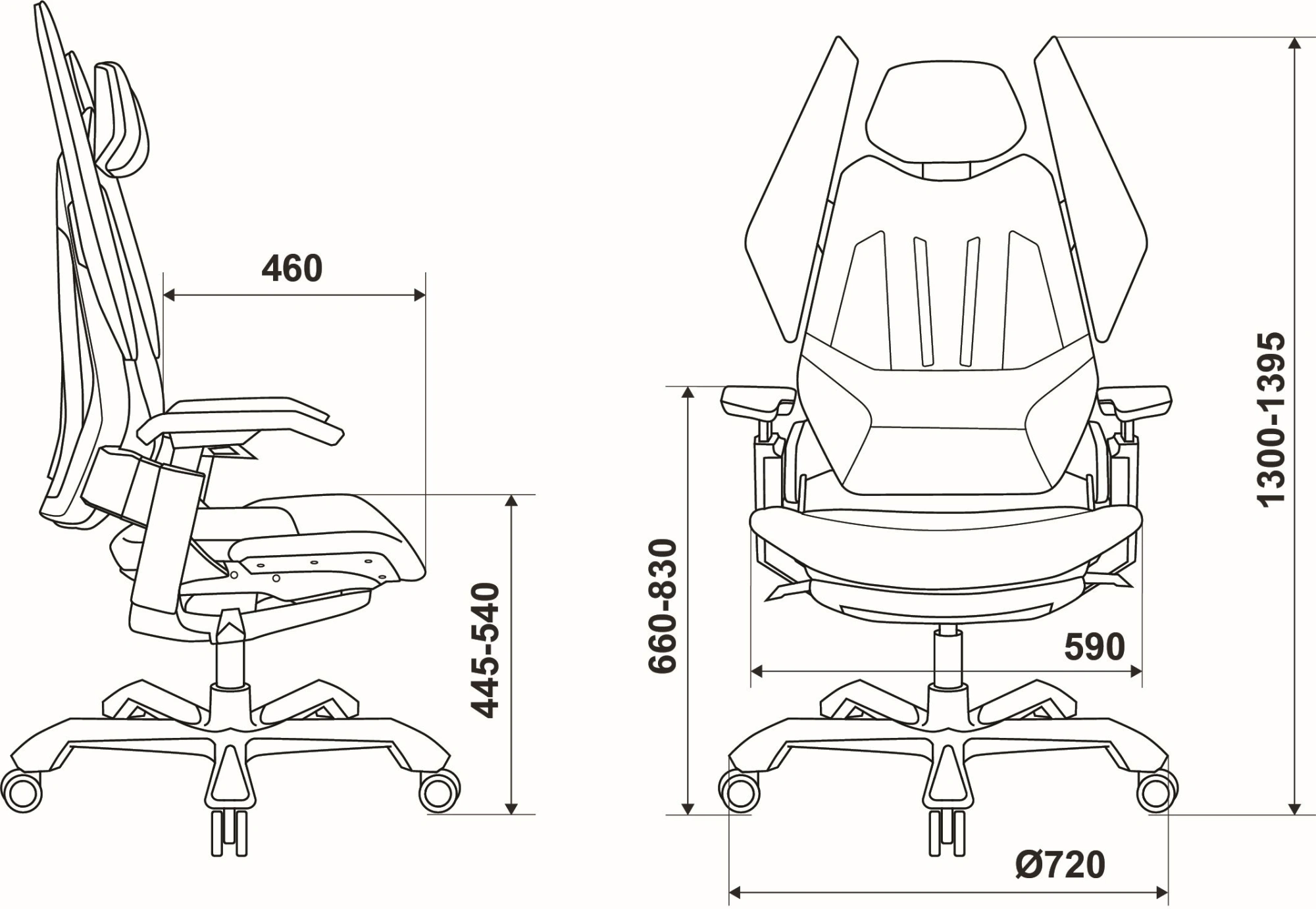 высоты (газлифт), высоты подголовника, глубины сиденья, положения подлокотников, угла наклона подголовника