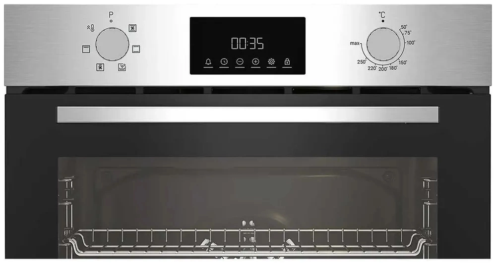 вентилятор охлаждения, дисплей, полностью стеклянная внутренняя поверхность дверцы духовки, утапливаемые переключатели