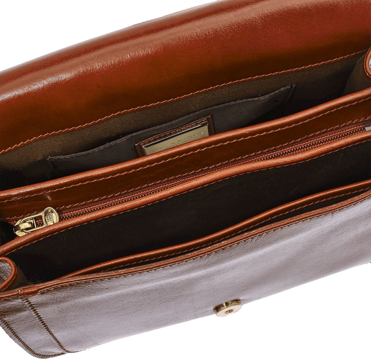 Сумка-мессенжер серии Story Donna - это компактная форма и лаконичный дизайн c минимумом декоративных деталей. Такое сочетание является отличным вариантом, соответствующим динамичному ритму современной жизни, который удачно вписывается в стиль casual, office, travel, street style. Дорогая итальянская кожа благородного коричневого цвета, дополненная золотистыми деталями отделки выглядит респектабельно, современно и стильно в независимости от эпохи, тенденций моды и трендов. Немаловажным достоинством модели является ее большая вместительность при весьма компактных размерах. Внутри сумки 3 отделения, 1 карман на молнии, 1 карман без застежки. Несъемный и регулируемый плечевой ремень.
