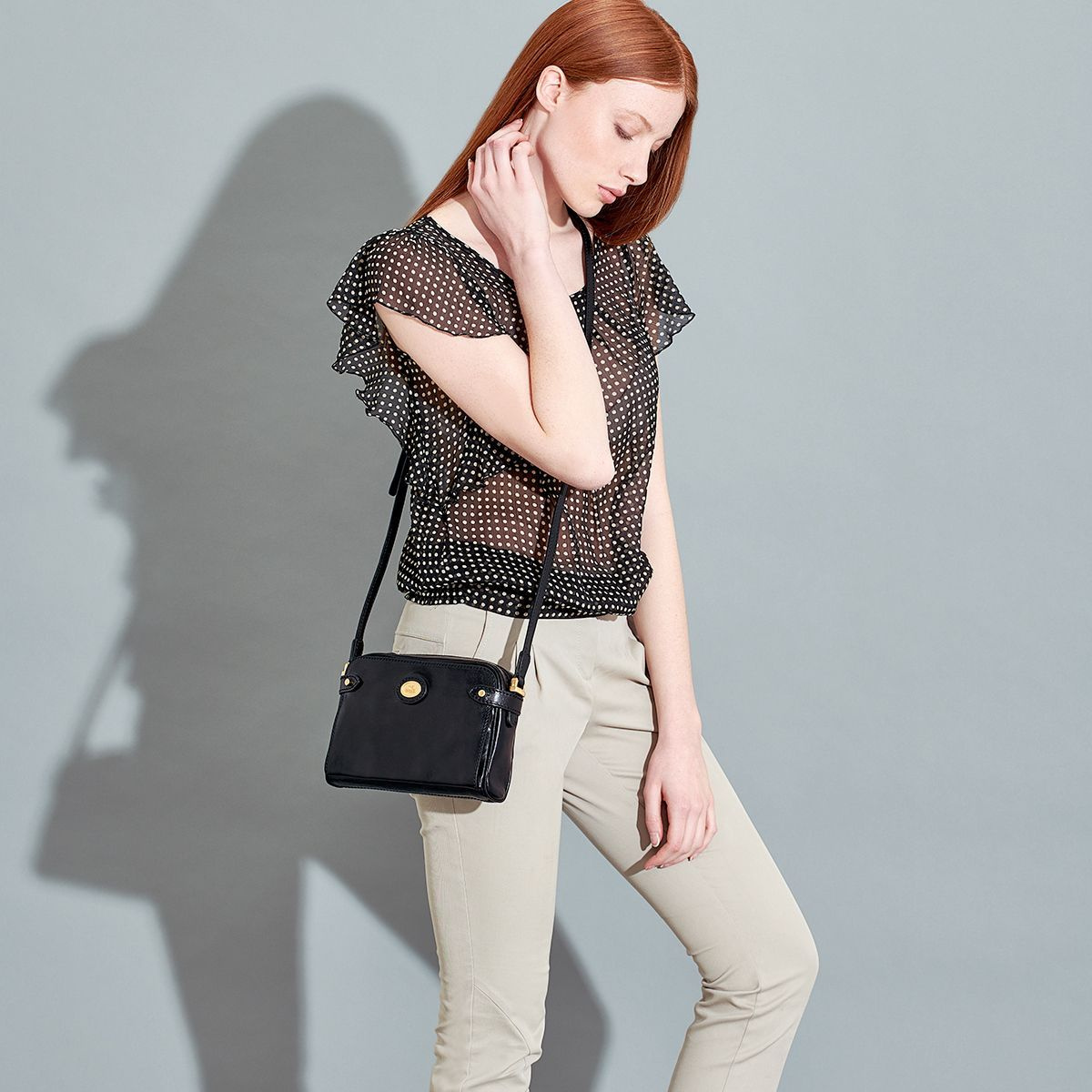 Изящная миниатюрная сумка серии Story Donna идеальное дополнение к современному образу casual chic (повседневниый шик/элегантная небрежность) объединяющем простоту и привлекательность, комфорт и роскошь. Золотистые детали фурнитуры идеально подчеркивают текстуру гладкой качественной итальянской кожи аксессуара, придавая изделию изысканный, утонченный вид. Боковые ремешки являсь стильным элементом декора и одновременно несут функциональную нагрузку - закрывают раскладной нуружный кармашек. Внутри сумки 1 отделение и 1 карман на молнии. Несъемный регулируемый плечевой ремень.