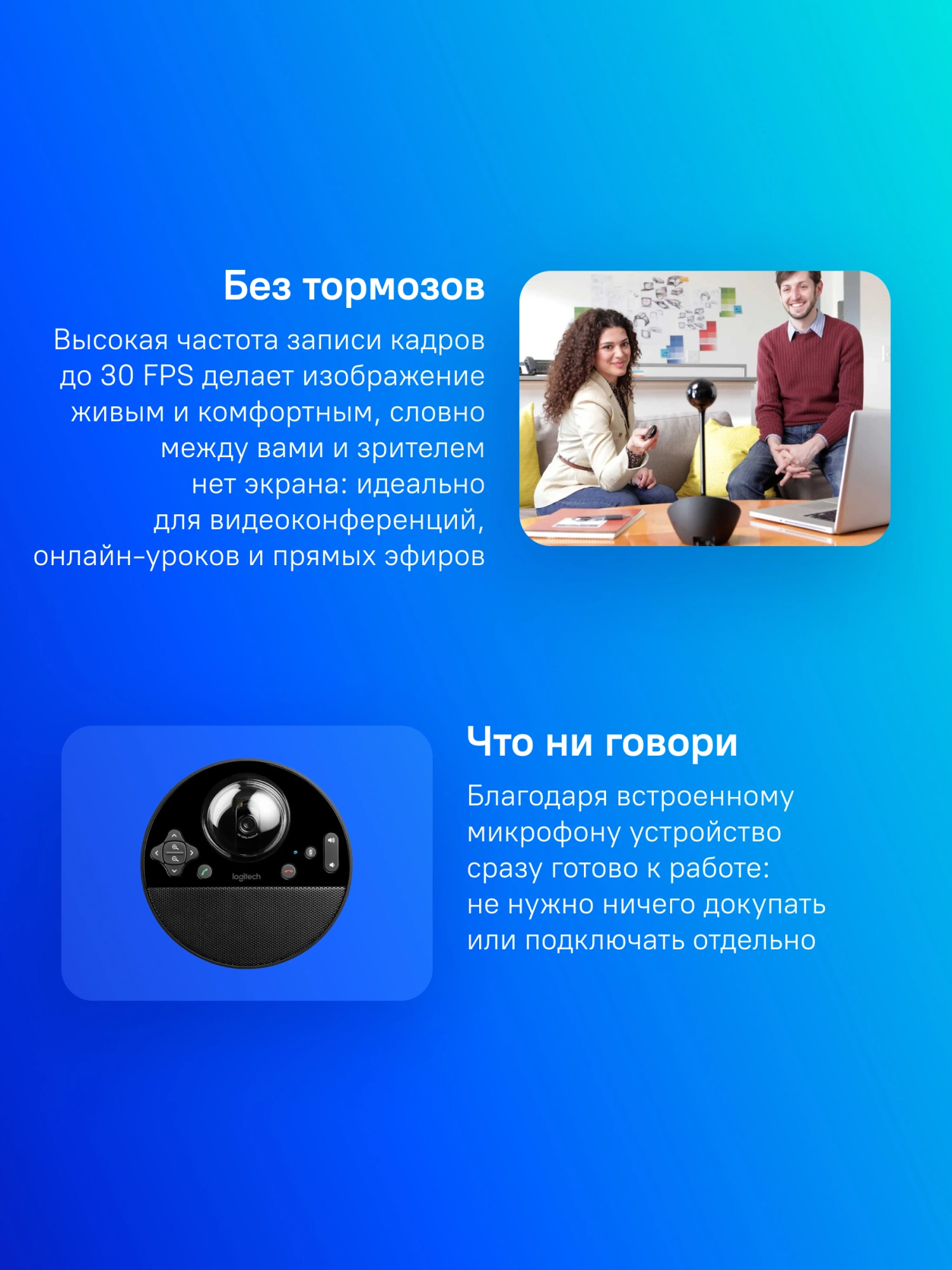 Встроенный громкоговоритель,. Пульт ДУ в комплекте. USB-подключение по технологии Plug-and-play. Видеосвязь в форматах Full HD 1080p (до 1920x1080 пикселей) и 720p HD (до 1280x720 пикселей) при использовании поддерживаемых приложений-клиентов.