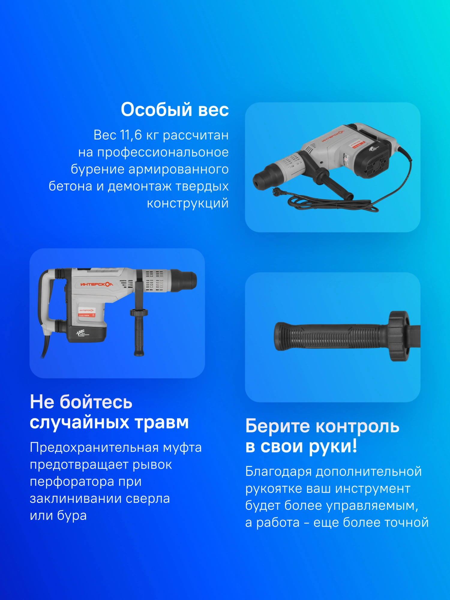 Перфоратор П-55/1700ЭВ, руководство по эксплуатации и инструкция по безопасности, гарантийный талон, рукоятка боковая, смазка для буров, кейс.