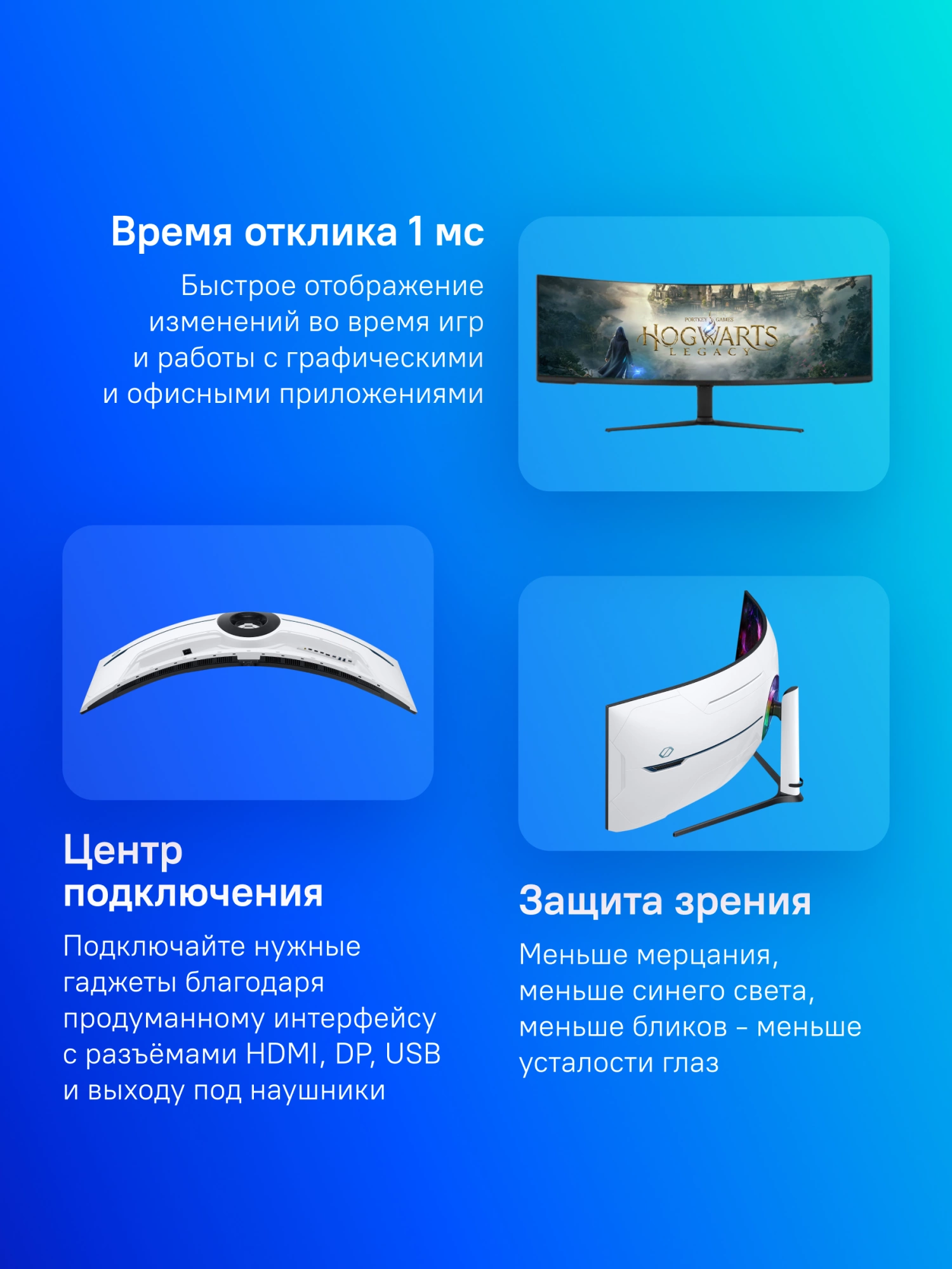 KVM-модуль, защита зрения, игровой режим, поддержка HDCP, таймер выключения, функция "картинка в картинке"