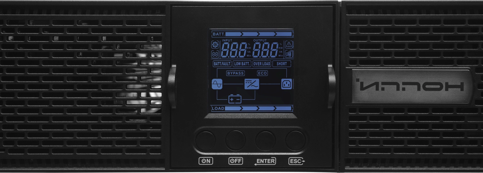 при нагрузке 105-110%, предупреждение, переключится в режим байпаса по истечении 10 мин, при нагрузке 110-130%, предупреждение, переключится в режим байпаса спустя 60с, при нагрузке >130% переключится в режим байпаса немедленно