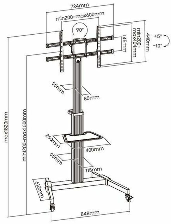 черный/белый 37"-86" макс.50кг напольный мобильный