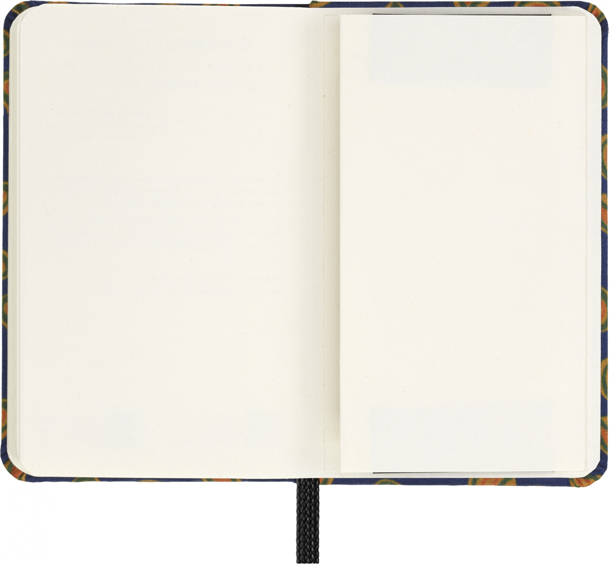 Переплет этого блокнота из коллекции Silk выполнен вручную из лучшего итальянского шелка компании Mantero. В коллекции используются несколько современных узоров пейсли, добавляющих элегантный шелковистый мягкий штрих в ваши заметки. Очень маленький, предназначенный для коротких записей, этот красивый блокнот имеет все классические черты Moleskine, от эластичной застежки до ленты-закладки, слегка скругленных углов и раскладного кармашка для хранения отдельных листков. Обложка с небольшим количеством наполнителя при попадании на нее света подчеркивает красоту шелка. Его миниатюрный формат и страницы цвета слоновой кости делают его идеальным для записи идей на ходу.