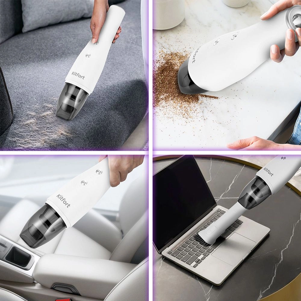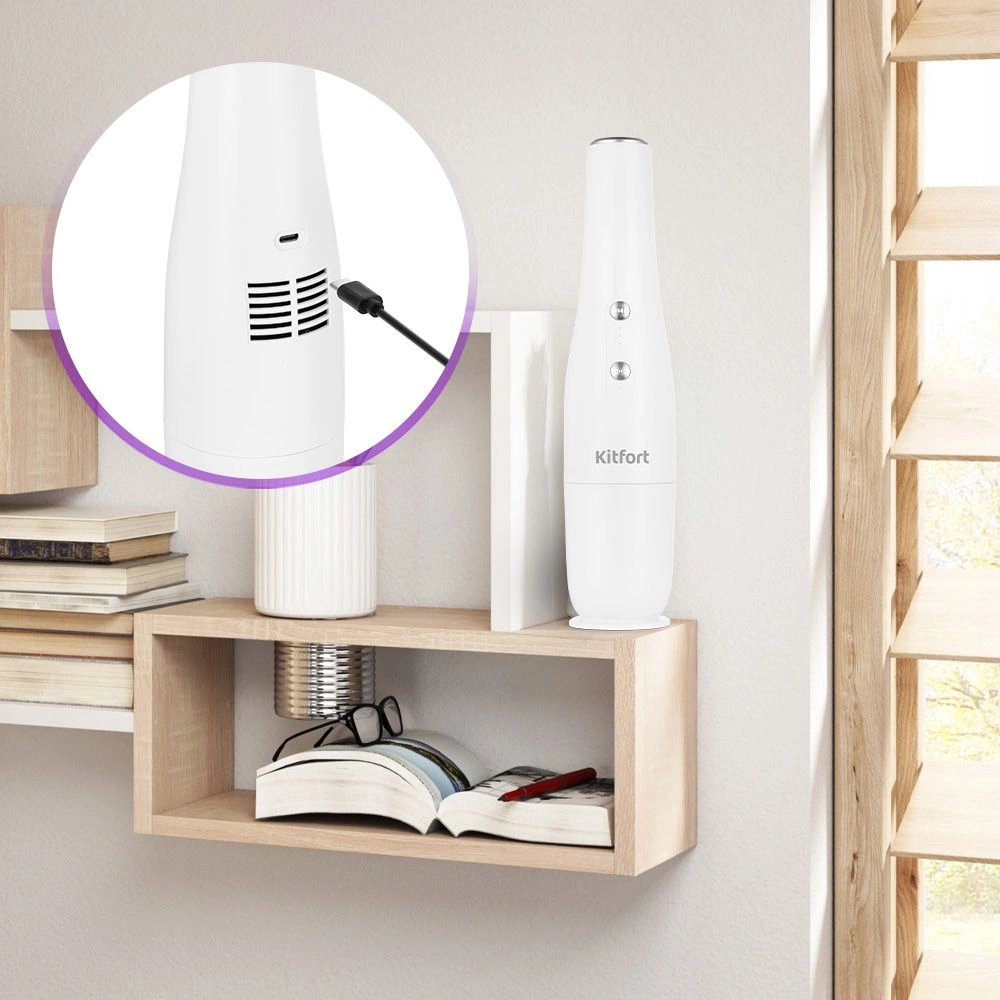 Ручной беспроводной пылесос КТ-5159 – портативное и компактное устройство. Он легко справится с пылью и мусором. Небольшие габариты и малый вес прибора делают процесс уборки простым и удобным!