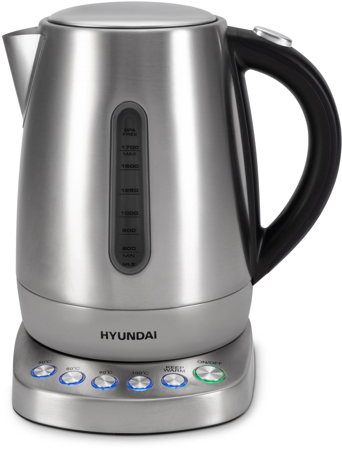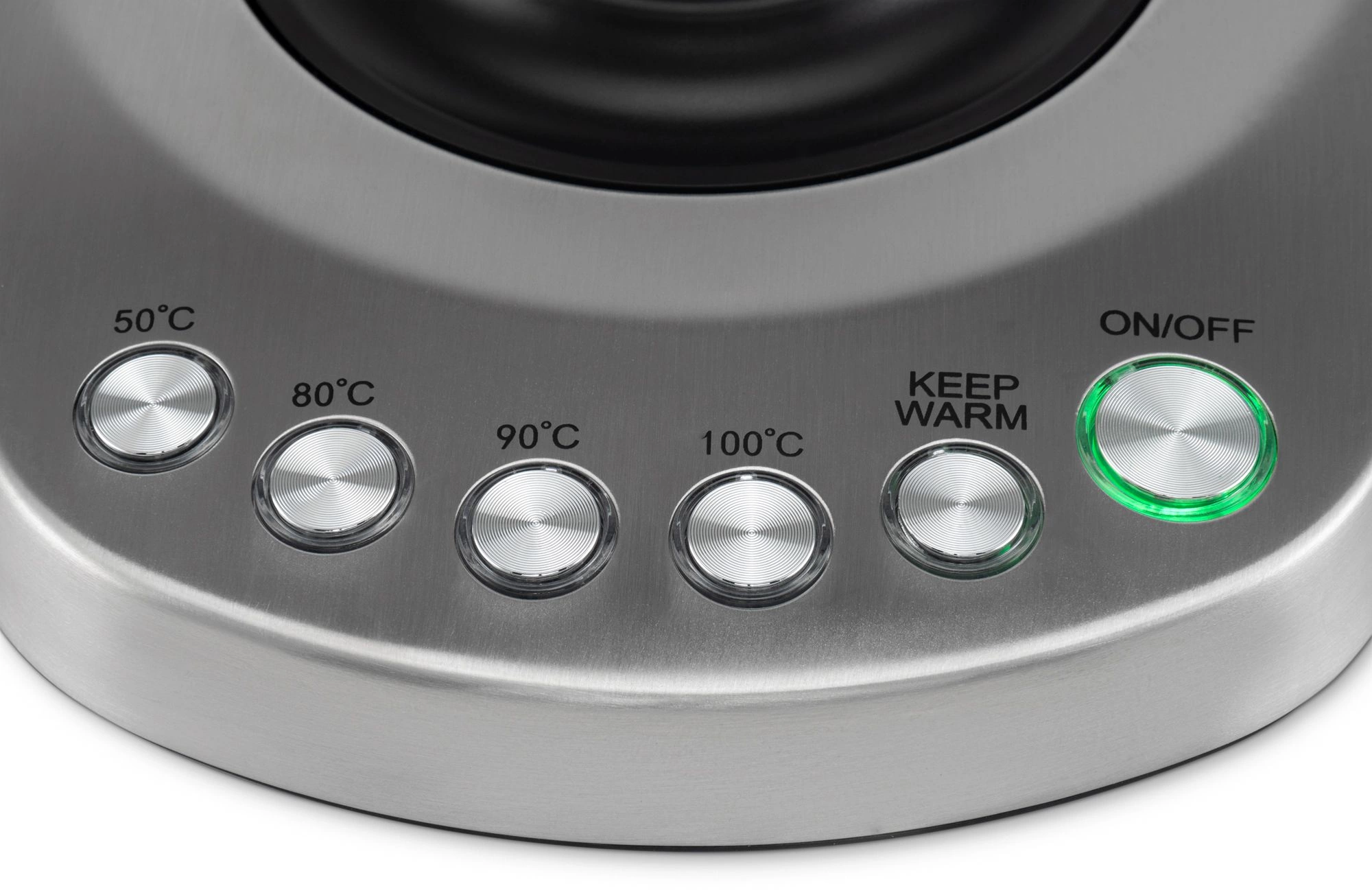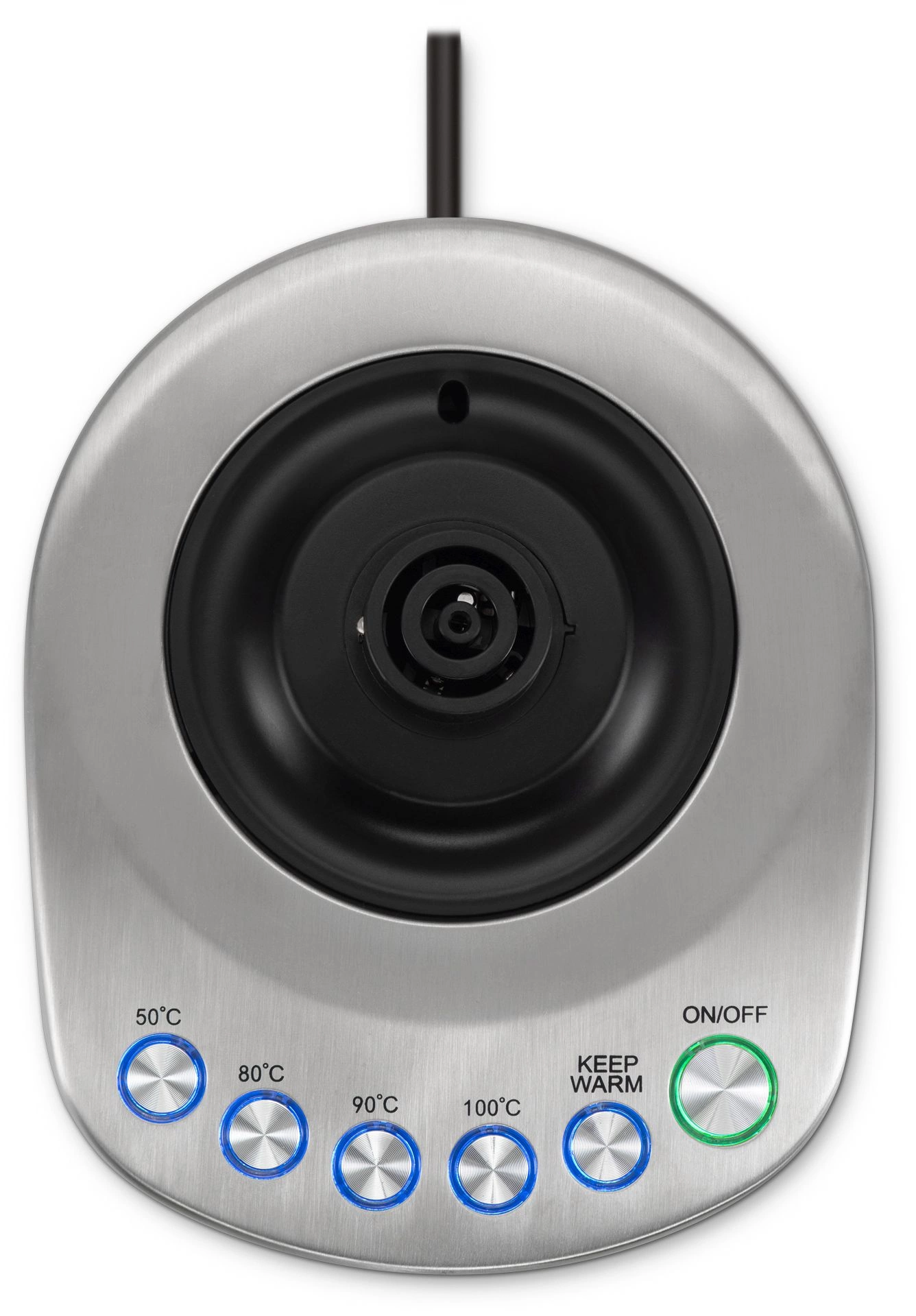Оснащен интуитивно понятной панелью управления и 4 предустановленными температурными режимами (50, 80, 90 и 100 градусов Цельсия), а также функцией поддержания заданной температуры до 2 часов. Скрытый нагревательный элемент способствует быстрому нагреву и облегчает уход за чайником.