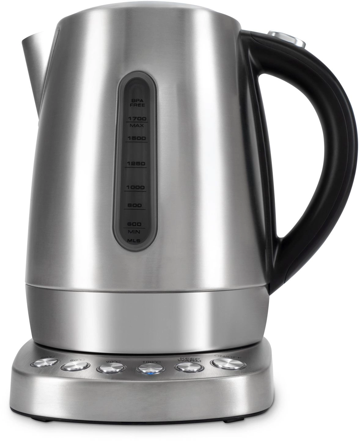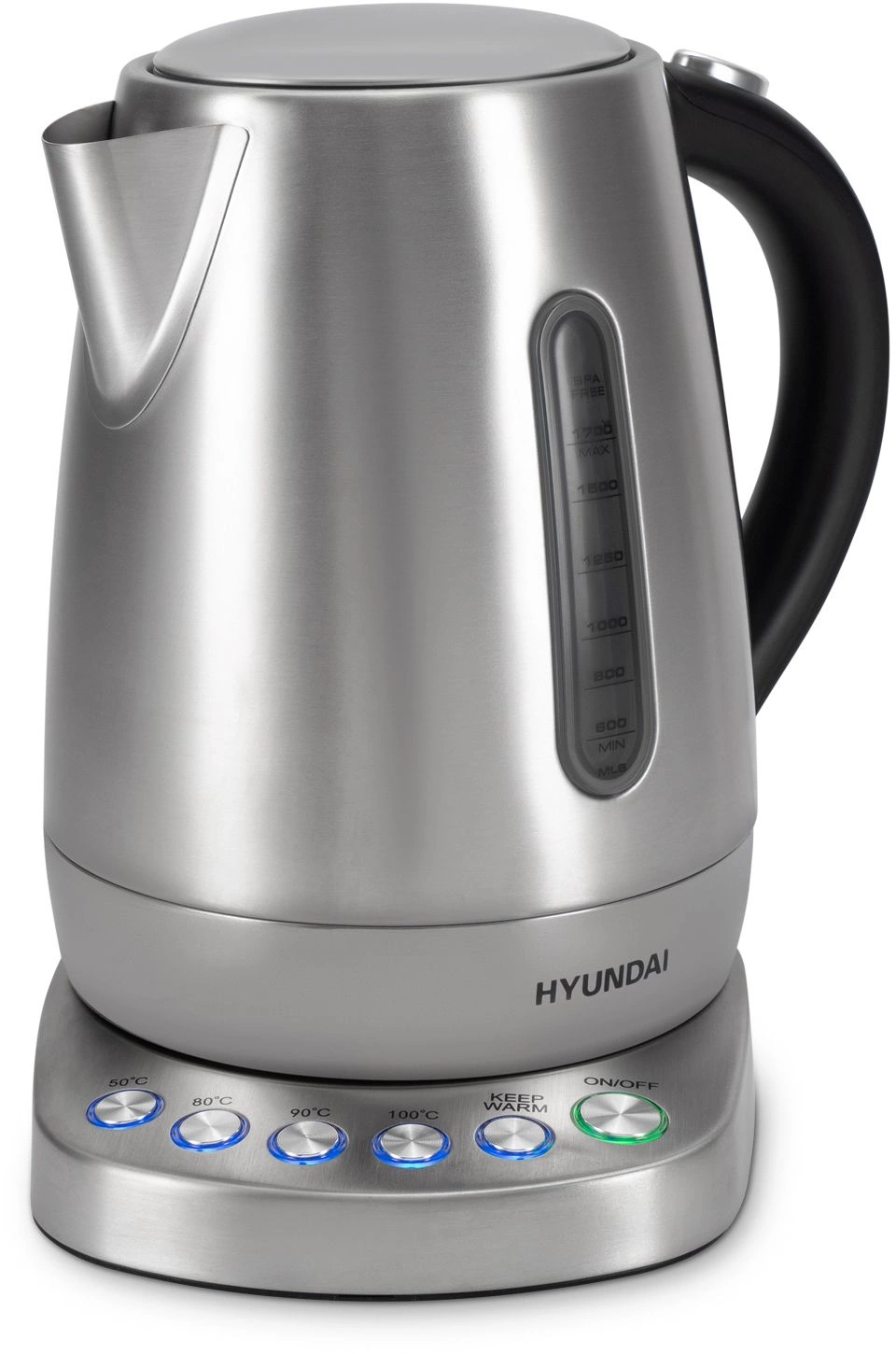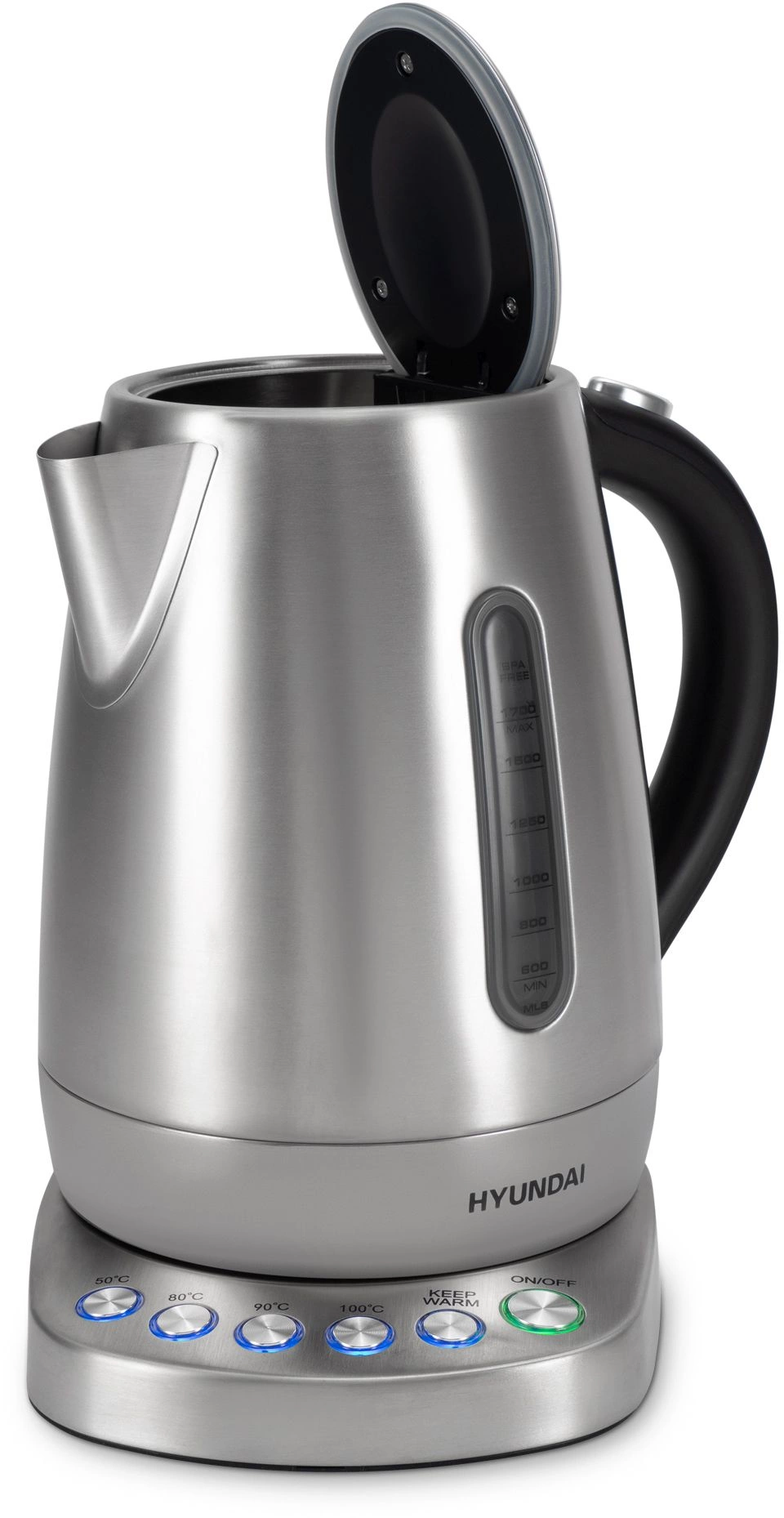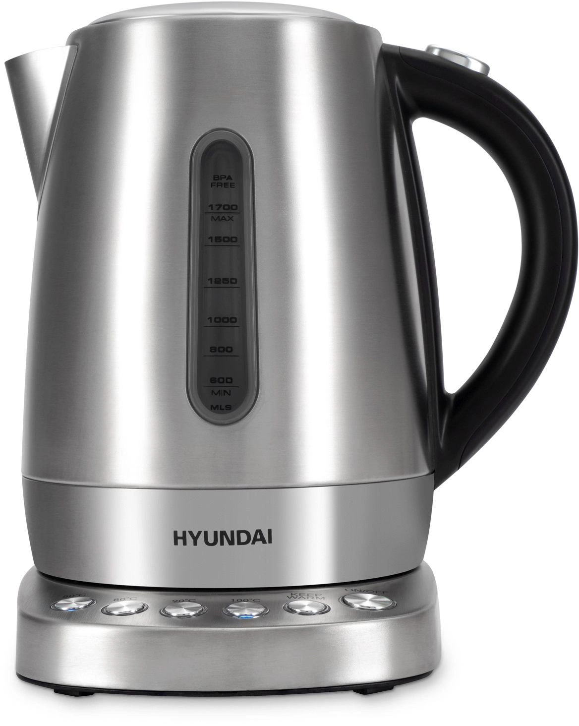 Оснащен интуитивно понятной панелью управления и 4 предустановленными температурными режимами (50, 80, 90 и 100 градусов Цельсия), а также функцией поддержания заданной температуры до 2 часов. Скрытый нагревательный элемент способствует быстрому нагреву и облегчает уход за чайником.
