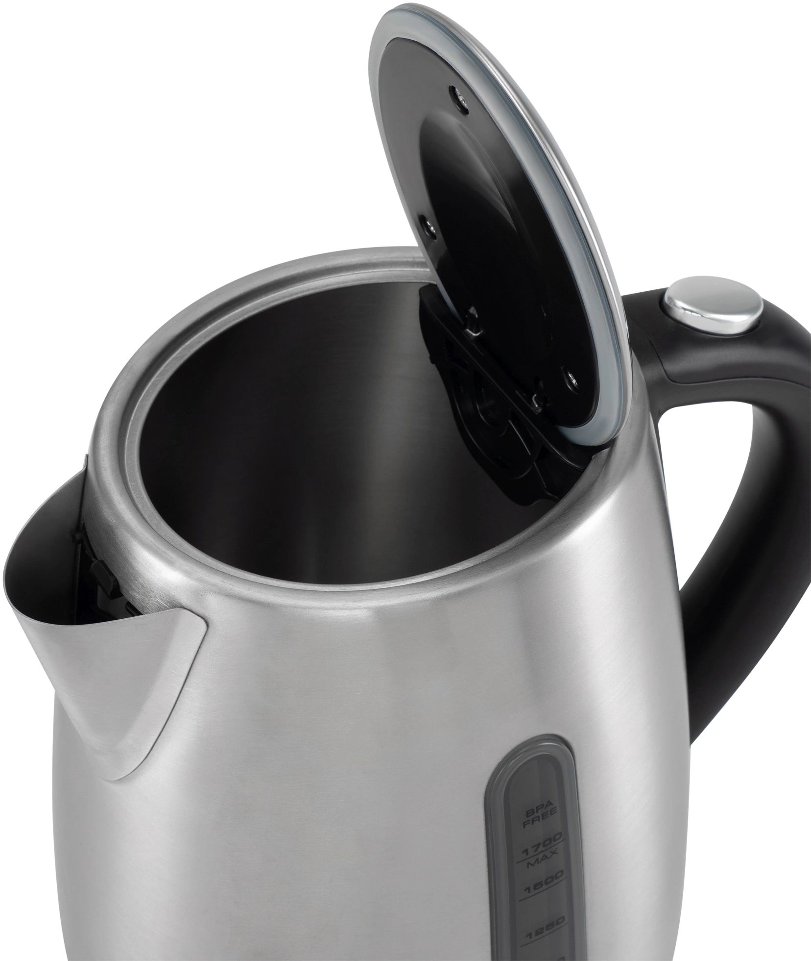 Индикатор уровня воды помогает точно контролировать количество наливаемой жидкости, а специальный фильтр защищает от накипи. Звуковой сигнал оповестит Вас о закипании. Автоматическое отключение и защита от включения без воды повышают безопасность использования. Удобная подставка с вращением на 360 градусов и кнопка открытия крышки создают дополнительный комфорт при эксплуатации.
