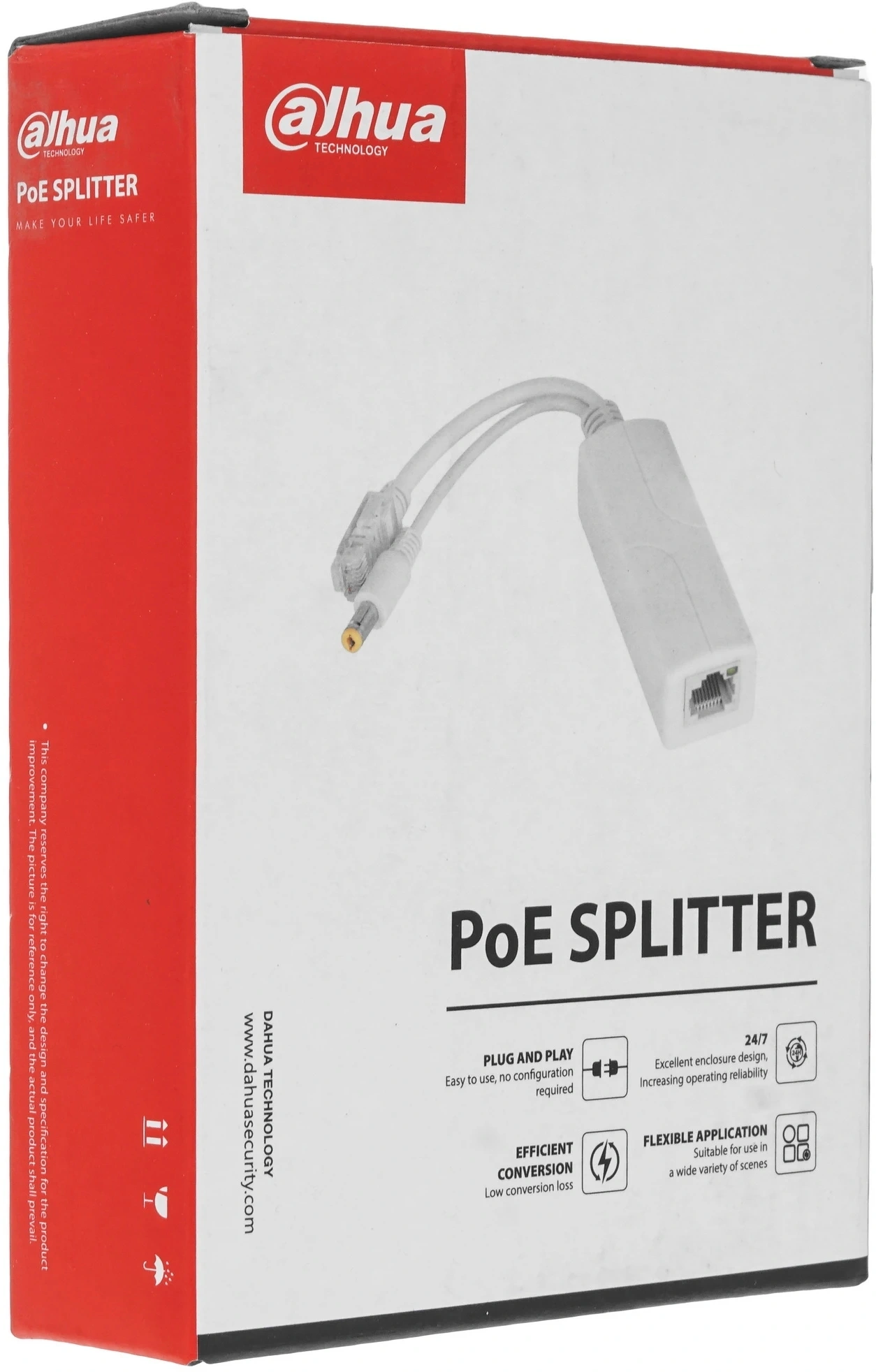 PoE сплиттер Порты: Вход: 1х RJ-45 10/100 Мбит/с (IEEE802.3af); Выход: 1х RJ-45 10/100 Мбит/с м 1х 12 VDC (до 14 Вт)
