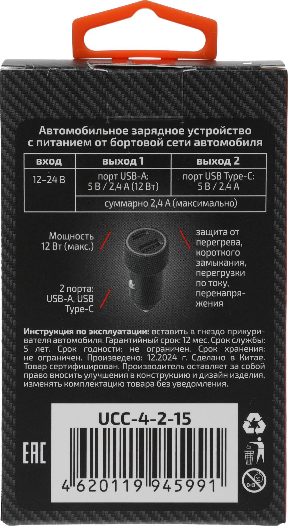 3A USB/USB Type-C черный