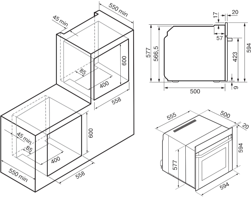 Размеры для встраивания