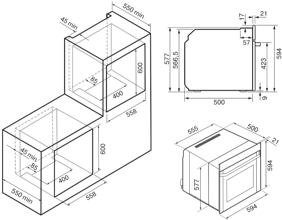 полностью стеклянная внутренняя поверхность дверцы духовки