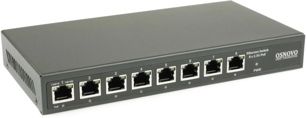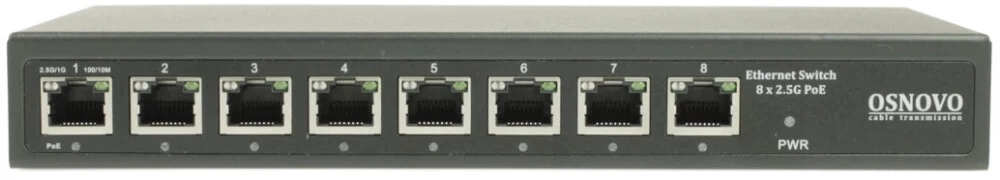PoE коммутатор 2.5G Ethernet на 8 RJ45 портов. Порты: 1 x 2.5G (10/100/1000/2500Base-TX) с PoE (до 90W, A+B) + 7 x 2.5G (10/100/1000/2500Base-TX) с PoE (до 30W). Соответствует стандартам PoE IEEE 802.3af/at/bt. Автоматическое определение и режим антизависания PoE устройств.