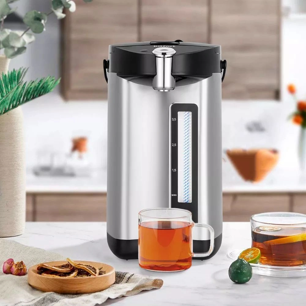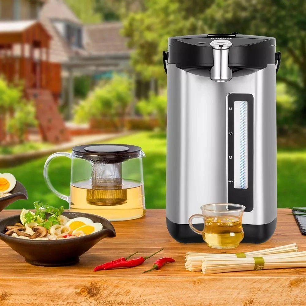 Термопот КТ-2514 служит для кипячения и поддержания температуры воды с помощью периодического включения и отключения нагрева. Отличие термопота от обычного чайника в том, что термопот поддерживает температуру воды, поэтому у вас всегда есть горячая вода.