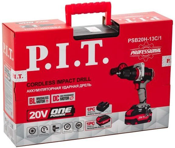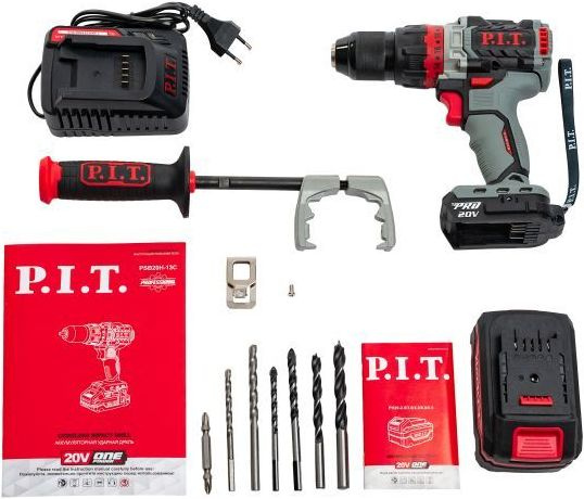 Дрель аккумуляторная, сверло 6 шт., бита двусторонняя, дополнительная рукоятка, металлическая скоба, кейс, зарядное устройство, аккумулятор 4Ач, руководство по эксплуатации