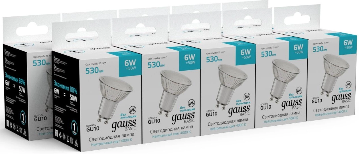 6Вт цок.:GU10 софит 220B св.свеч.бел.нейт. (упак....