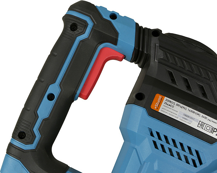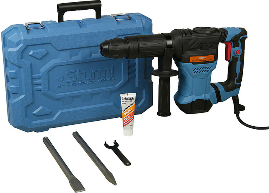 Перфоратор, дополнительная рукоятка, пика 18х390, лопатка 18х320, смазка для хвостовиков буров, ключ, дополнительные угольные щетки 2шт, инструкция по эксплуатации, кейс.