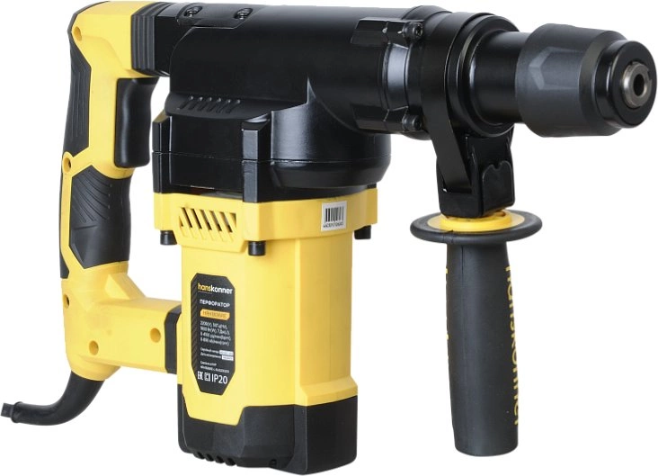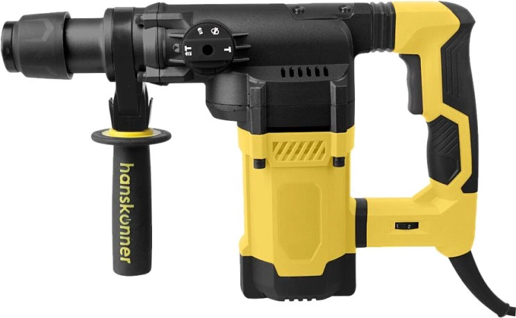 Перфоратор, дополнительная рукоять, глубиномер, угольные щетки - 1 комплект, смазка для хвостовиков буров, SDS+ сверла - 3 шт., долото - 2 шт., пылезащитный колпачок, кейс.