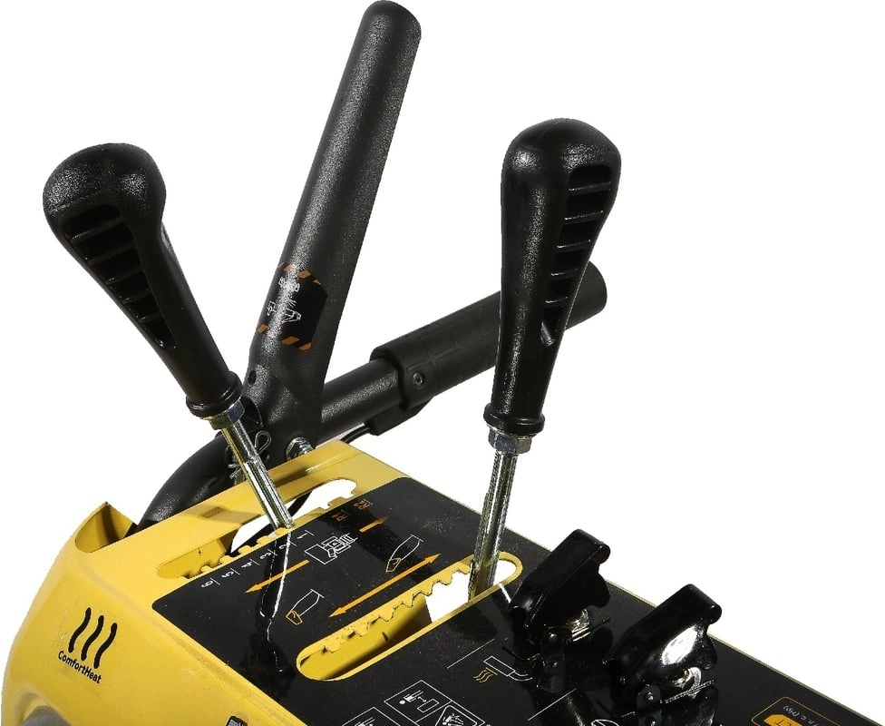 Снегоуборщик, лопатка для очистки желоба, свечной ключ с рычагом, гаечный ключ, срезной штифт и шплинт для шнека (2 комплекта), инструкция по эксплуатации, инструкция по безопасности
