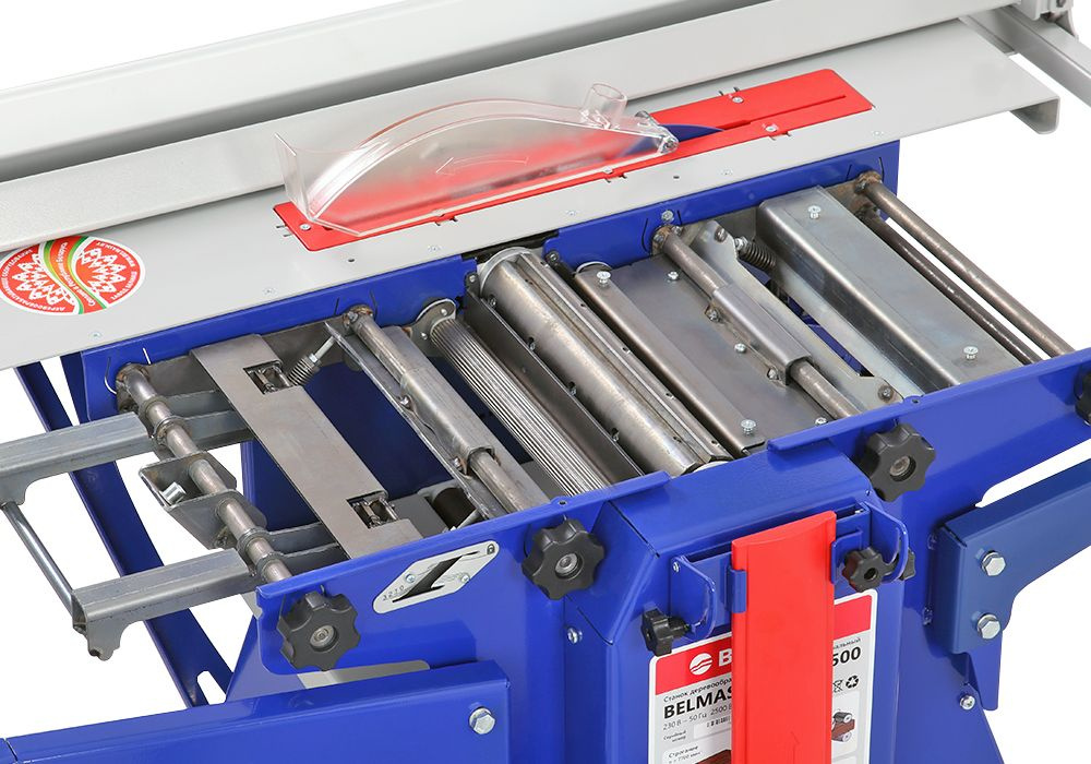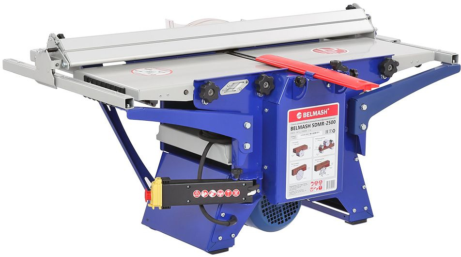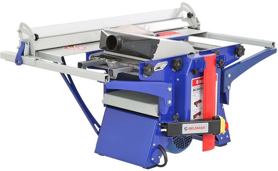 BELMASH SDMR-2500 – один из самых функциональных комбинированных станков «Завода Белмаш». В нем реализованы четыре ключевые функции, которые позволят выполнить базовые операции: распиловку, строгание/фугование, рейсмусование и фрезерование дисковыми фрезами.